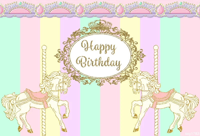 Виниловый фон для фотосъемки с изображением карусели розового, мятного, фиолетового, желтого и золотого цветов Sensfun для девочек на день рождения