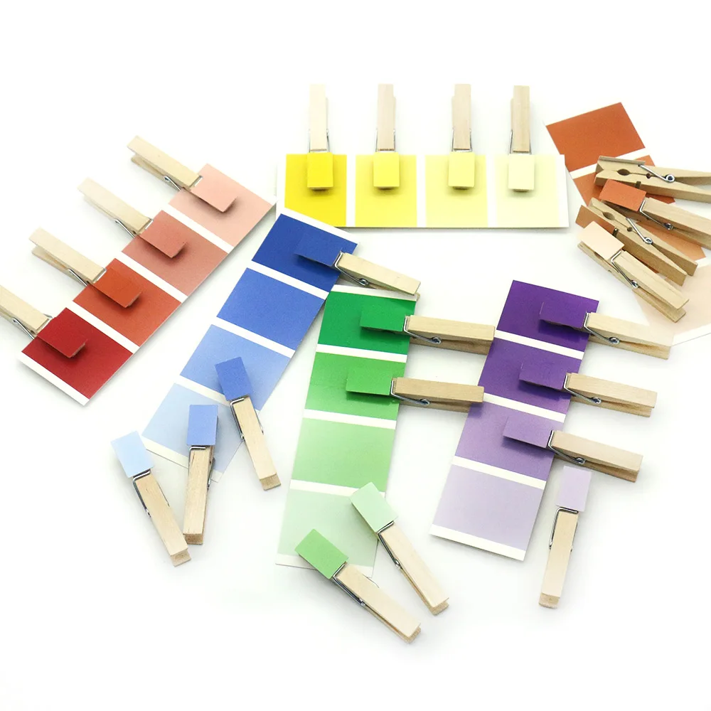 Этот материал включает в себя 6 цветных карт, 24 зажима с мини-цветными планшетами. Эта сумка для сортировки цветов идеально подходит для малышей или дошкольников. Просто прикрепите цветные прищепки к соответствующим цветовым картам.