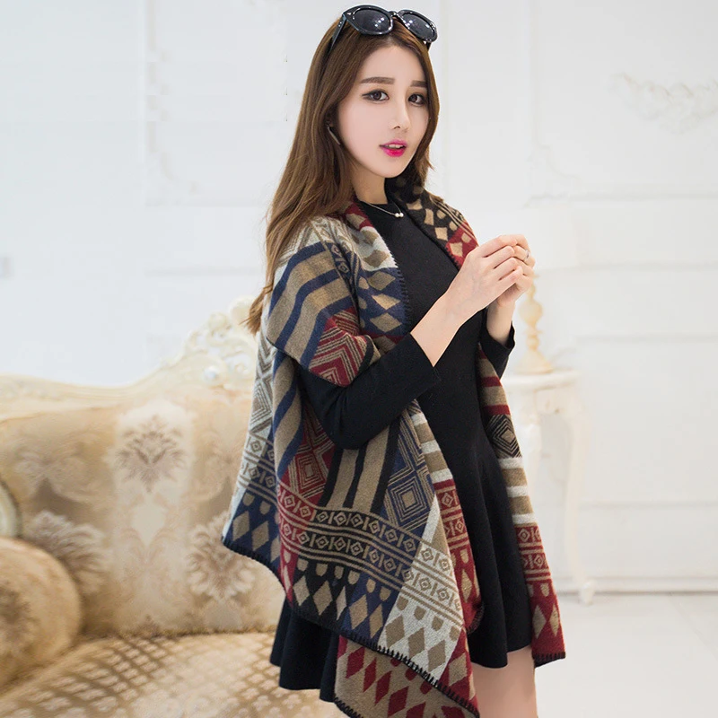 Зимние женские пончо платки и искажать толстые теплые накидки из ис...