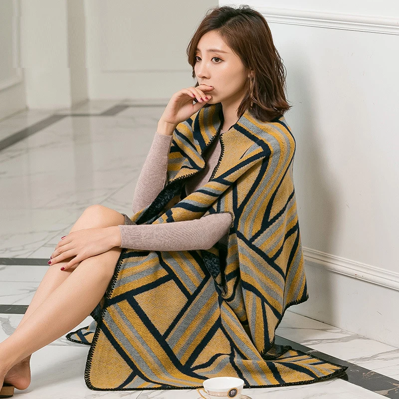 Роскошные брендовые пончо и накидки, кашемировая шаль, зимнее пончо в клетку, дизайнерская плотная теплая женская накидка с геометрическим рисунком, женский шарф