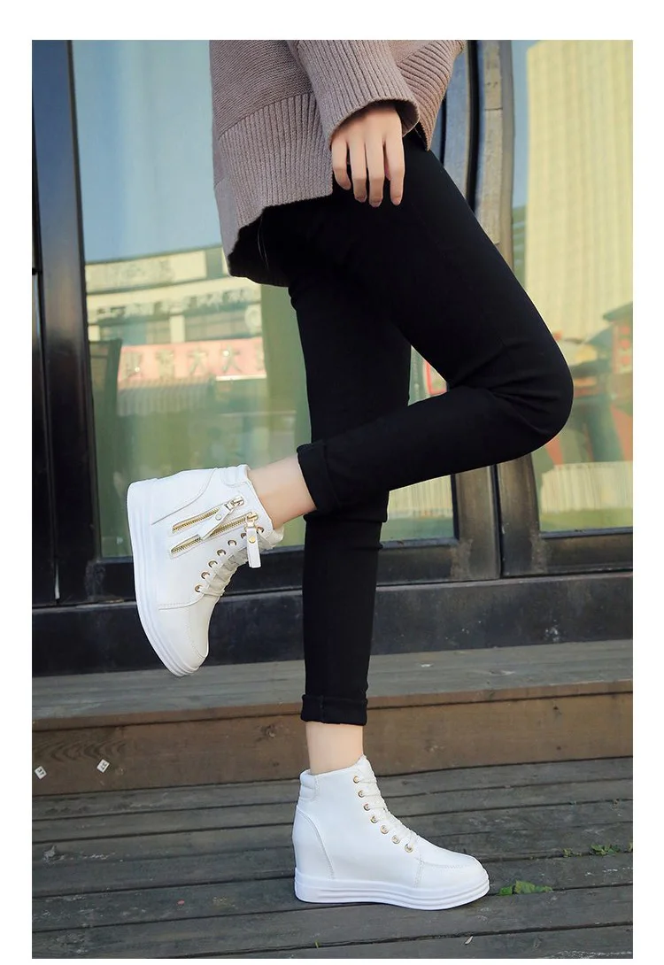 Женские кроссовки на танкетке с высоким берцем, повседневные белые водонепроницаемые кроссовки на осень 2019