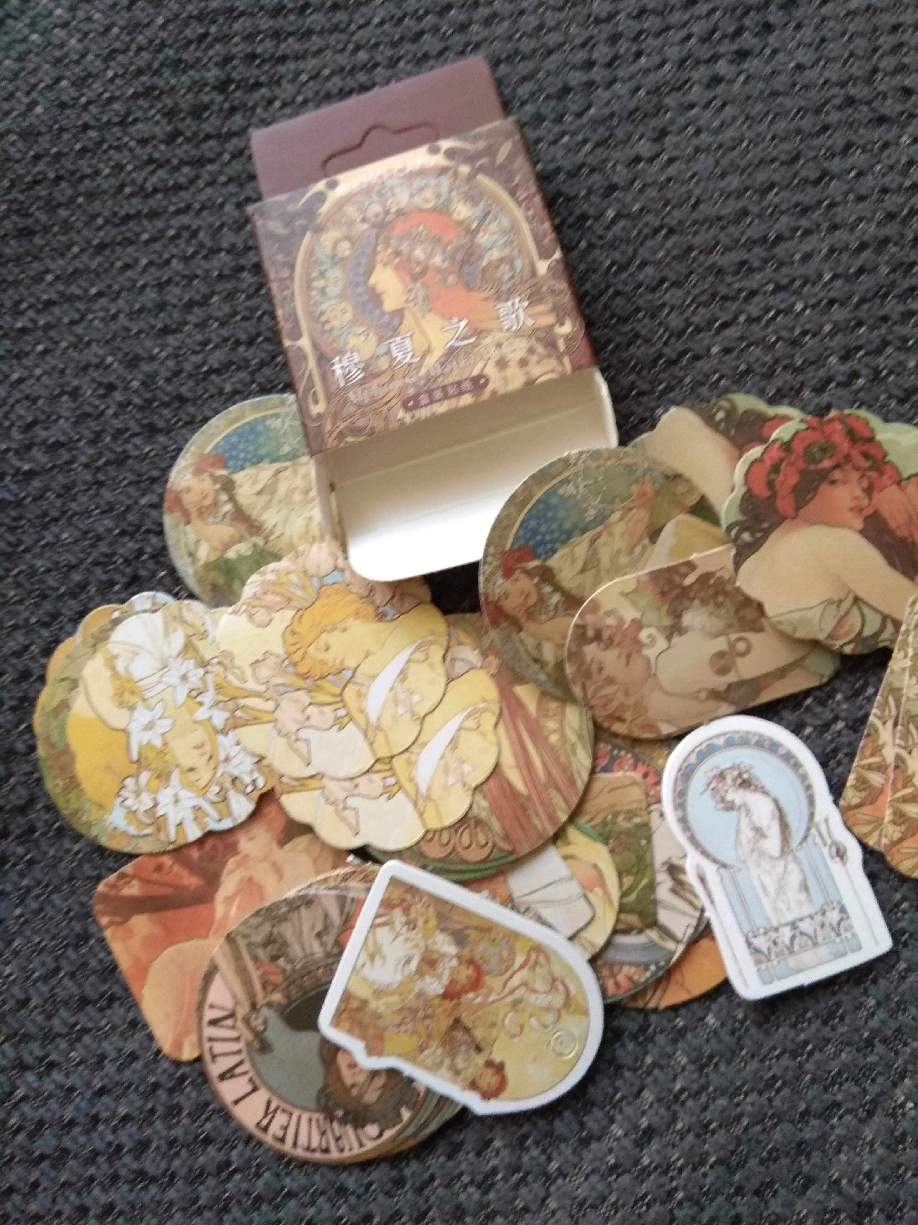 пришло очень быстро, упаковка не помчалась. на почте еле нашли посылку, могли вообще потерять, если бы она не отслеживалась. по номеру откопали из закромов родины. картинки хорошо пропечатаны, некоторые повторяются, разной формы. не прозрачные. очень понравились, спасибо
