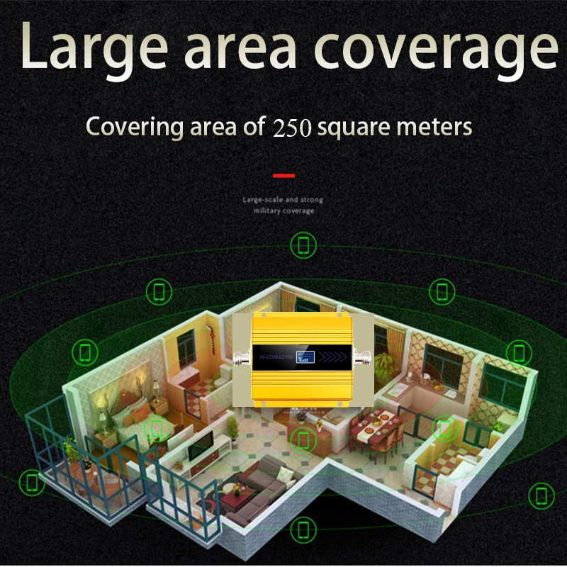 Идеально подходит для 1 - 2 комнат или небольших офисов:Попрощайтесь с удаленными звонками в вашем доме.1. Работает для WCDMA. Повторитель сигнала 2100 МГц.2. Диапазон частот: Uplink:1920 ~ 1980 МГц нисходящий канал: 2110 ~ 2170 МГц3. С ЖК-дисплеем, может указывать состояние сигнала.4. Площадь покрытия: около 300 кв. М без покрытия 1. Крышка антенны около 100-150кв. М.5. Высокая линейная конструкция, ALC технология.6,1 набор с 2G 3G 4G Наружной антенной, 2G 3G 4G внутренней антенной, Репитер сигнала. Идеально подходит для домашнего использования.7. Улучшите внутренний мобильный сигнал, больше не снижайте звонки, больше нет плохой скорости сети.