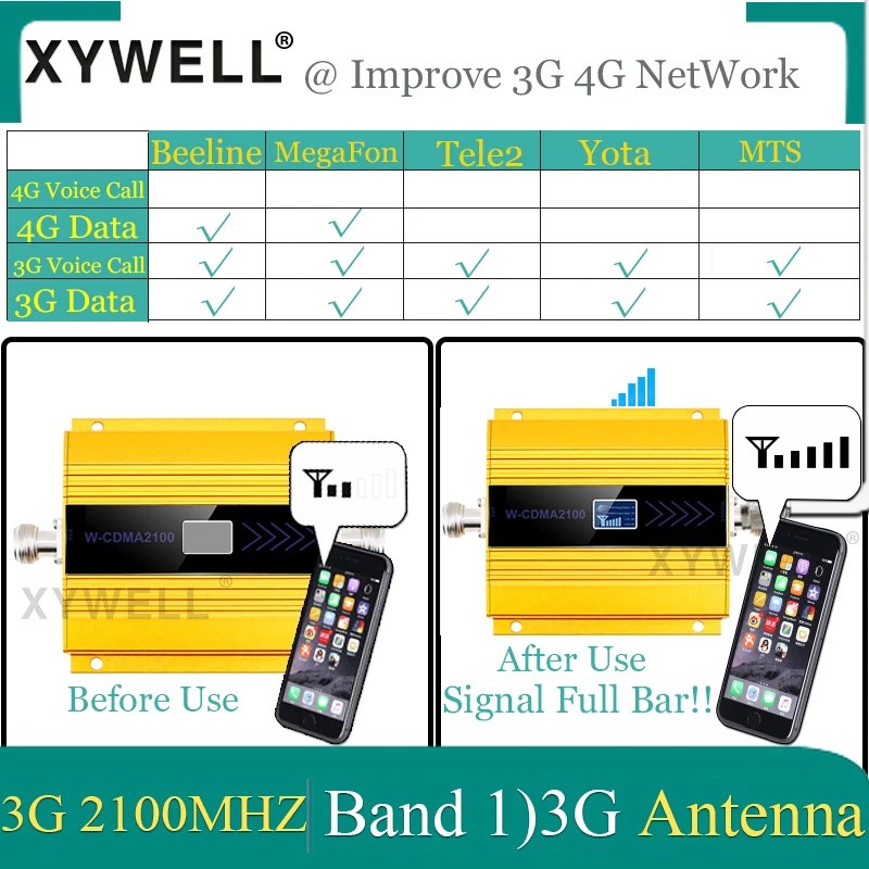 1. Пожалуйста, убедитесь, что вы можете получить как минимум 3 бар 2100 МГц (полоса 1) 3G сигнал на открытом воздухе перед покупкой, в противном случае этот продукт не может вам помочь. Для улучшения сигнала в помещении необходим хороший внешний сигнал.