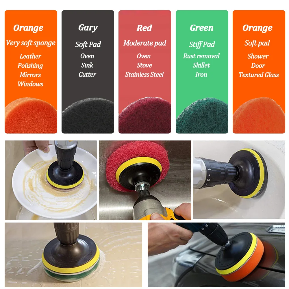 Набор щеток для дрели, щетки для очистки автомобильных шин, обода колеса, для шуруповерта, поролоновая полировальная Подушка, инструменты для чистки автомобиля