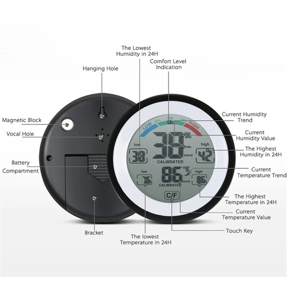 Цифровой термометр, гигрометр с сенсорным ЖК-дисплеем для дома и улицы, измеритель температуры и влажности, Метеостанция по Цельсию