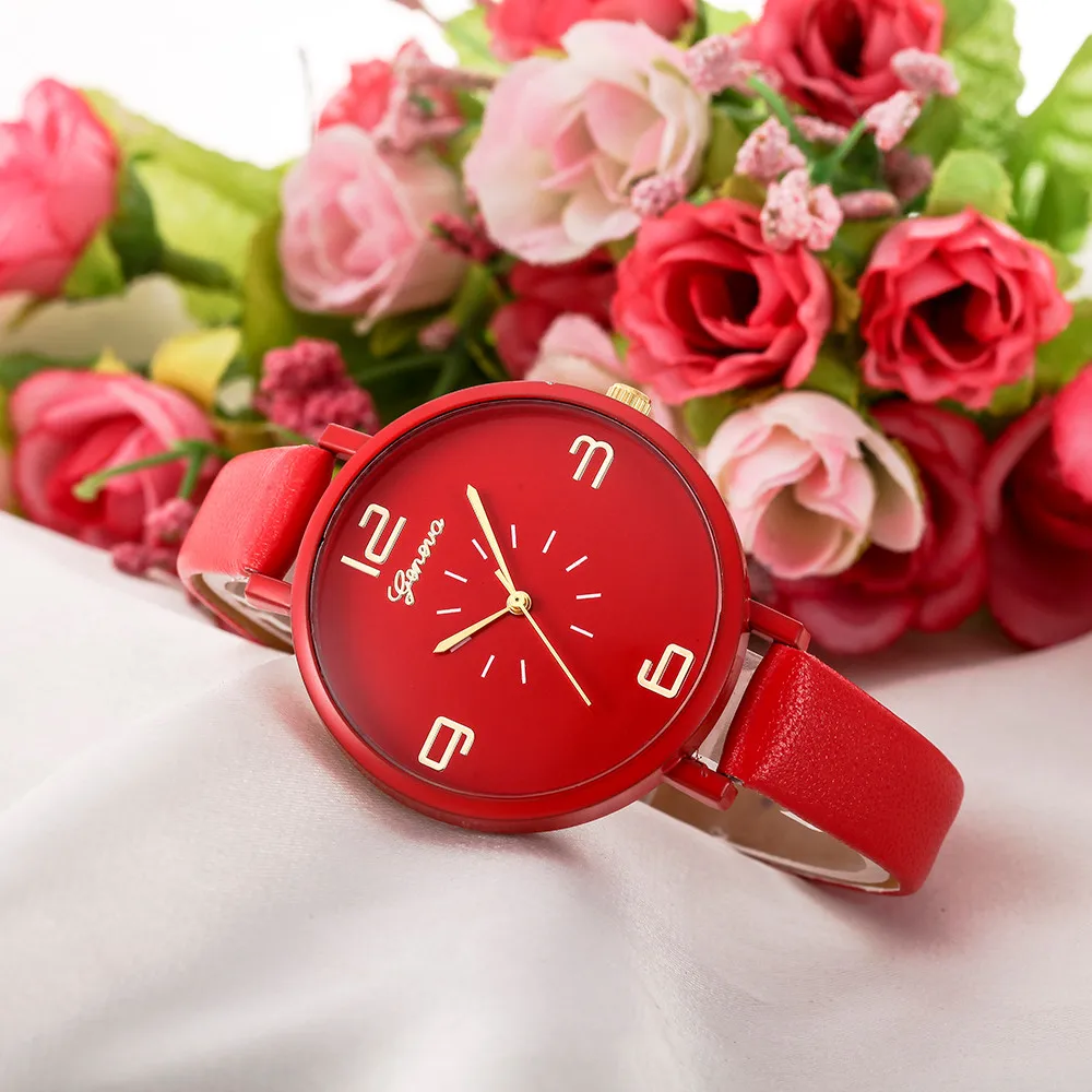 Женские Брендовые часы Geneva с простым дизайном часы новая мода вы...