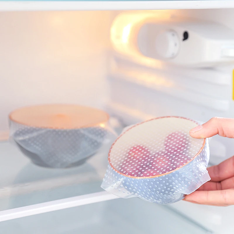 4 шт.компл. многоразовые силиконовые стрейч крышки чаша Еда чехол вакуумная Обёрточная бумага печать Еда контейнер для хранения крышка свежие кухонные крышки