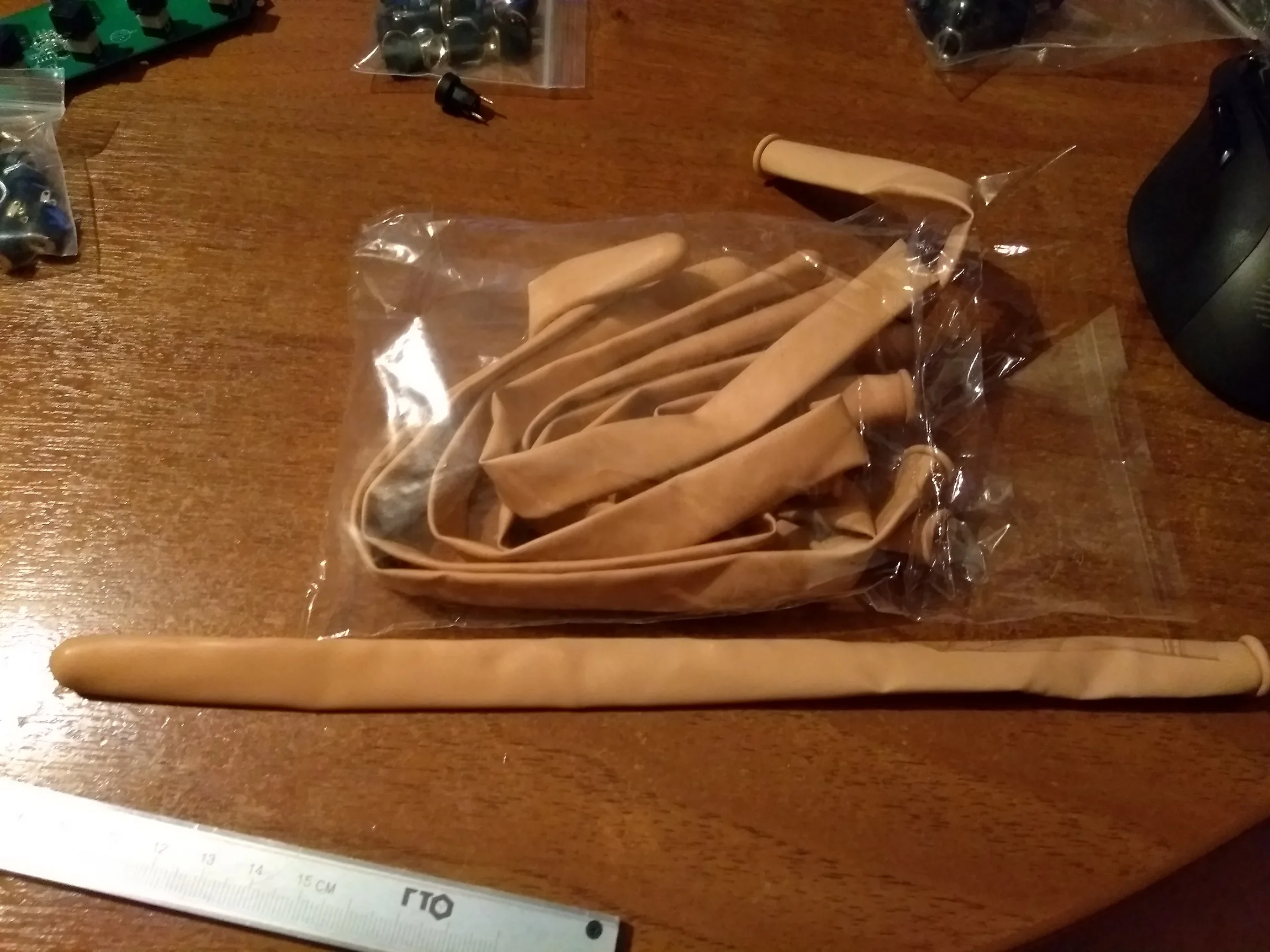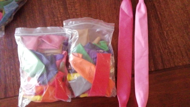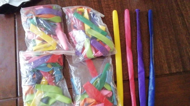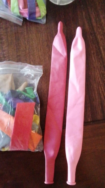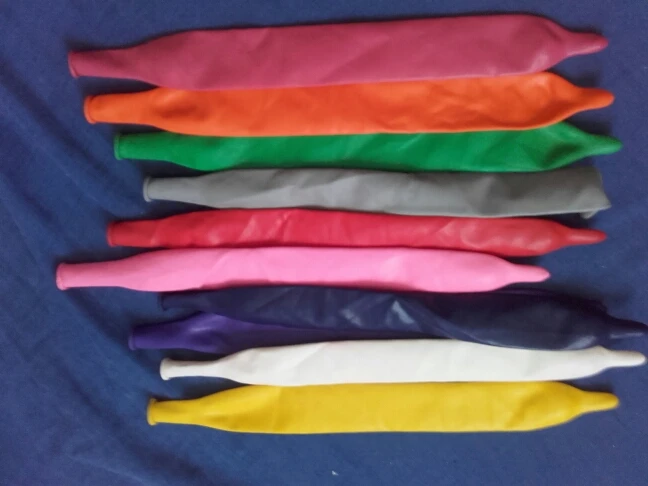 Шары для моделирования. Качество умеренное, дырявых не было. Накачивать ручным насосом или специальной машинкой, способной создать достаточное давление. Надеятся, что созданная фигура долго продержится - не стоит. Стенки шаров довольно тонкие.