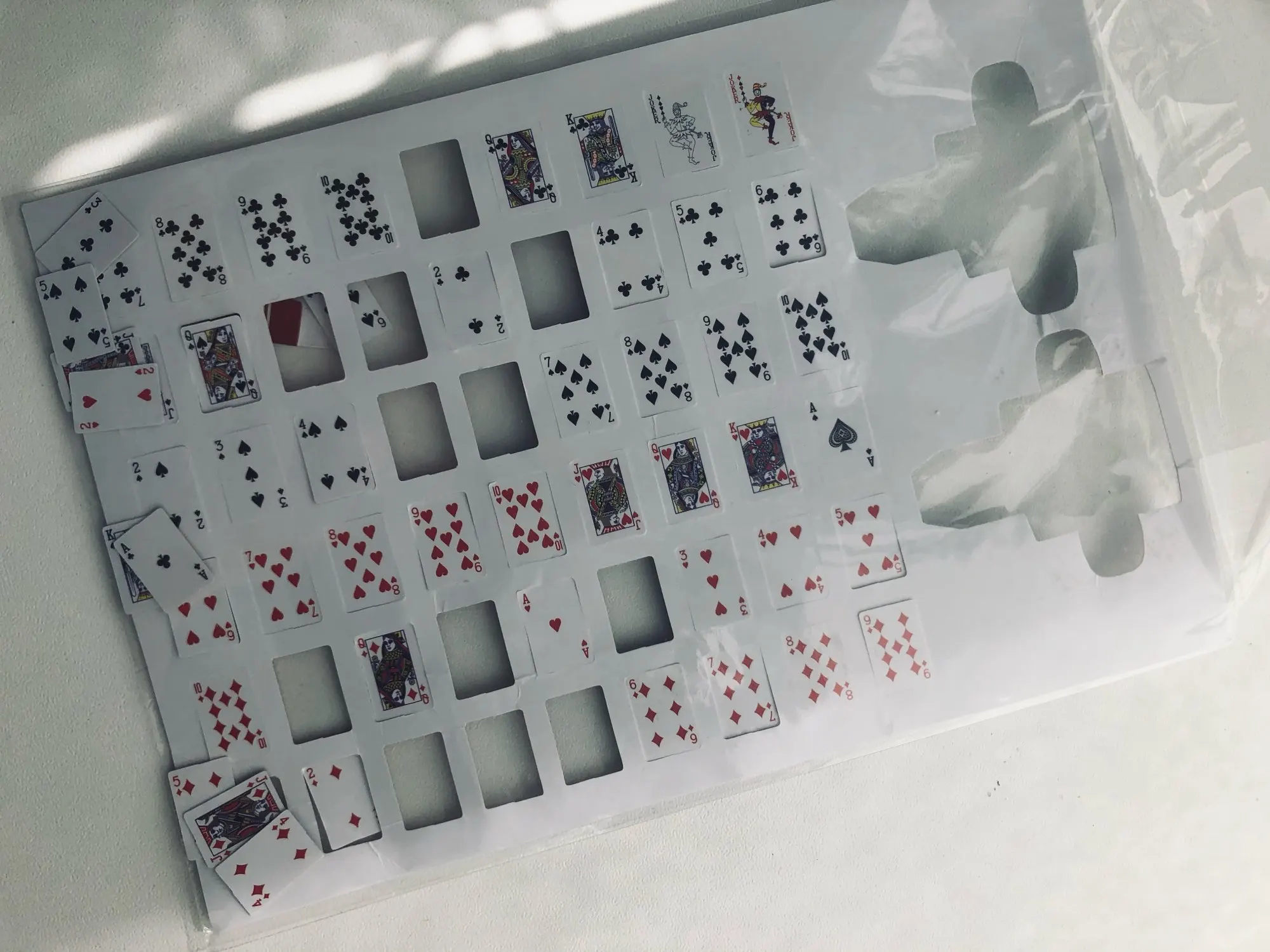 В коробочку не влезает и половина колоды. Т.е. даже в две коробочки не влезает вся колода