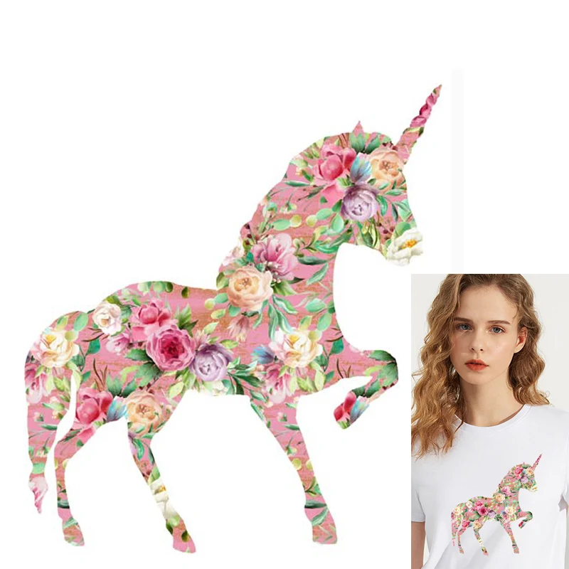 Pulaqi нашивки в форме единорога для одежды, утюжок для передачи тепла, напечатанные наклейки, Декор, сделай сам, мультяшная аппликация, аппликации для одежды F