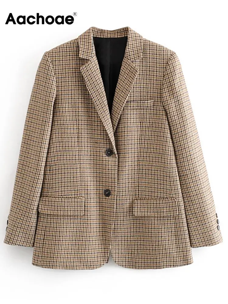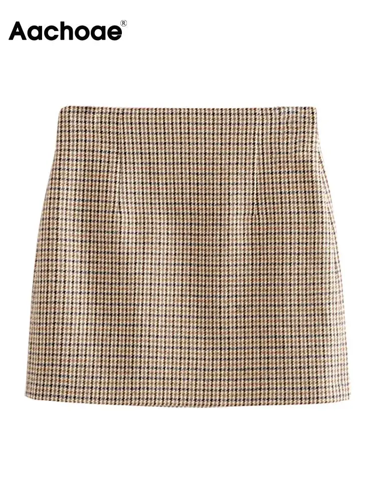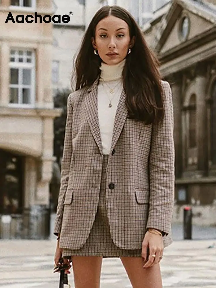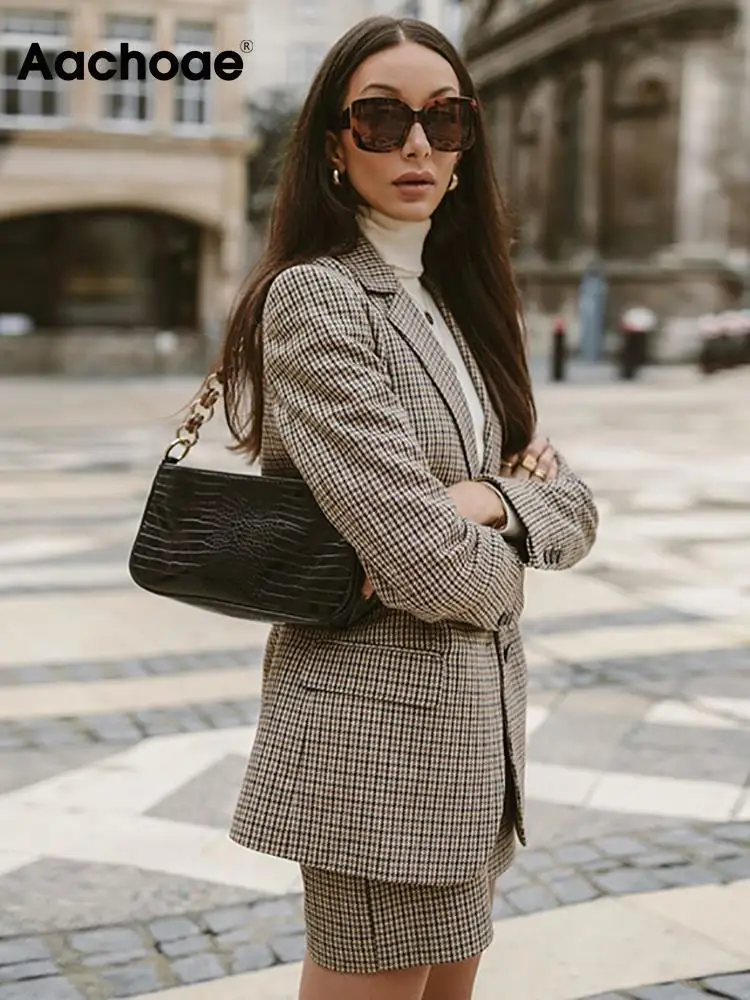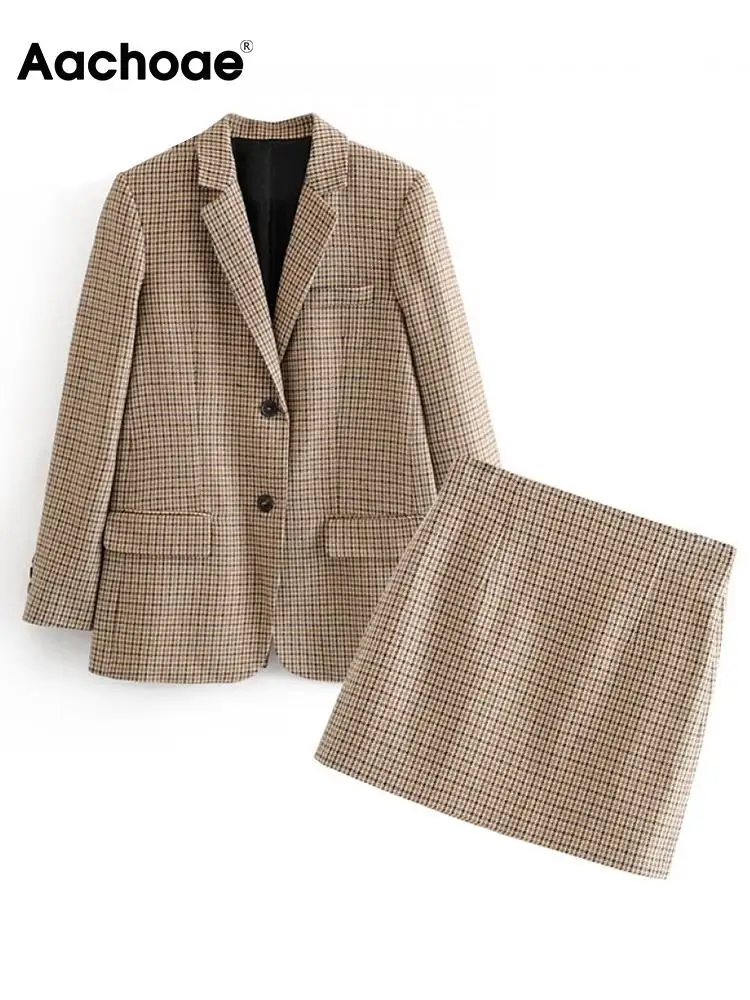Женский офисный костюм Aachoae, комплект из двух предметов, однобортный Блейзер с рисунком гусиные лапки и шикарная мини-юбка с высокой талией