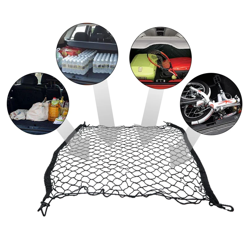 Универсальная сетка для багажника автомобиля Органайзер для хранения в багаже нейлон Эластичный Сетка с 4 пластиковыми крючками, автомобильные аксессуары