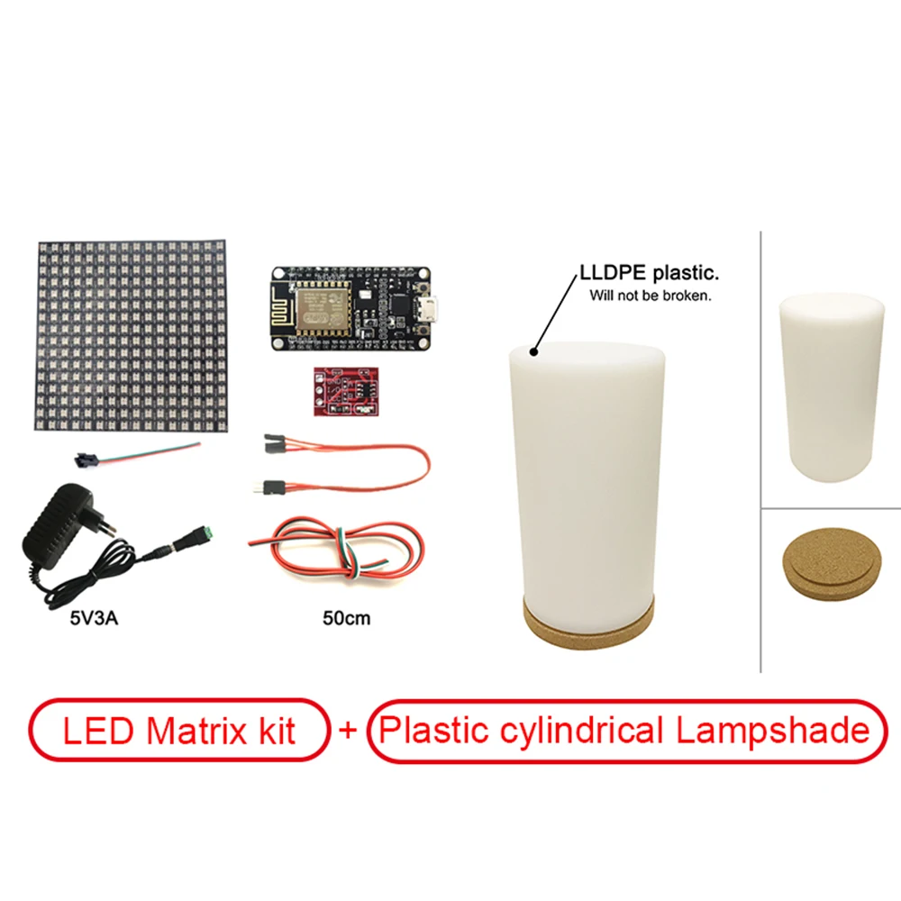 Посылка приехала быстро. Упаковано достаточно хорошо. Пластиковый плафон отлично рассеивает, эффекты типа огня смотрятся отлично. но время с таким плафоном уже почти не различимо. Основание из пробки не очень хорошее. Трубу 50мм диаметром можно использовать канализационную. Для примерки и испытаний брал вообще втулку от бумажных полотенец, и матрицу крепил на резинки. Можно в качестве трубы использовать втулку от рулонной бумаги для плоттера. Она около 52мм диаметром. Прошивку лучше обновить. Использовал 85 эффектов с приложением firelamp от Koteyka. firelamp_pp_ua. Блок питания продавец отправил на 4 А. блок достаточно легкий. Интересно протестировать под полной нагрузкой, но не уверен, что дойдут руки. Возможно дополню отзыв позже.