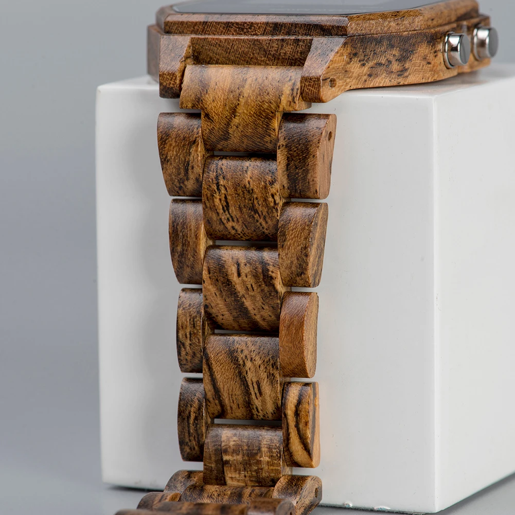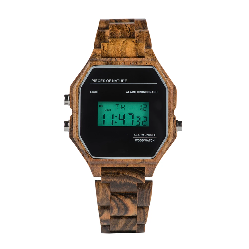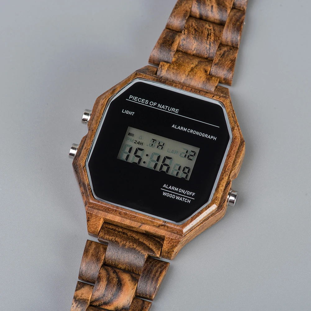 Светящиеся цифровые наручные часы: светодиодный дисплейДеревянные часы: Эбеновое дерево и ЗебраПерсонализированные часы: engarve на задней крышкеМногофункциональный Relogio Masculino: будильник, отображение недели, отображение даты