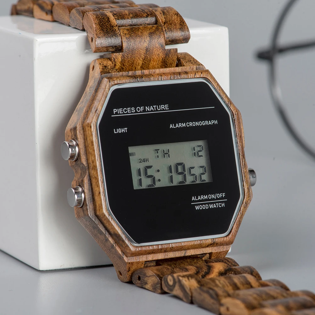 Цифровые часы BOBO BIRD-1 шт.1 х Деревянная подарочная коробка1 x инструмент для регулировки ремешка