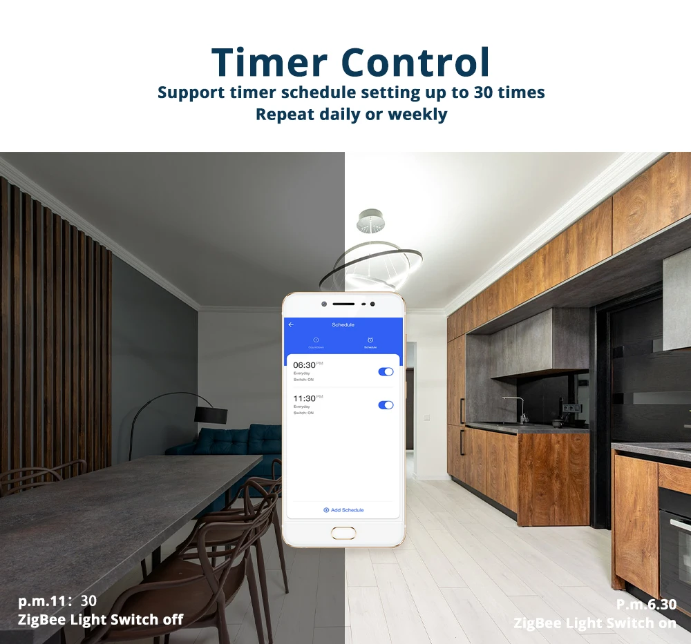 Настенный кнопочный выключатель Tuya Zigbee, выключатель для освесветильник, без нейтрального провода, работает с Alexa Google Home, с голосовым управлением