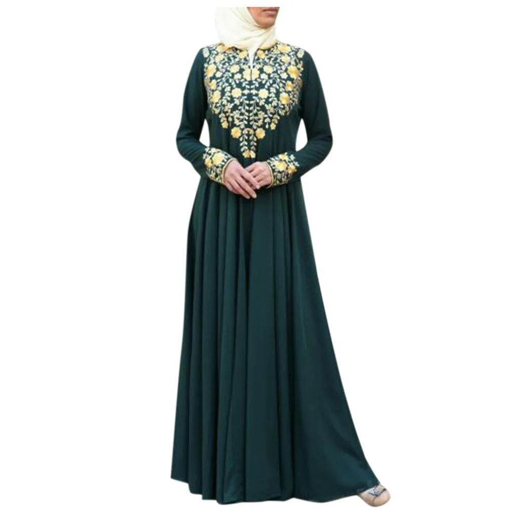feature3Elegant Muslim Embroidery Abaya Full Dress Vestidos Cardigan