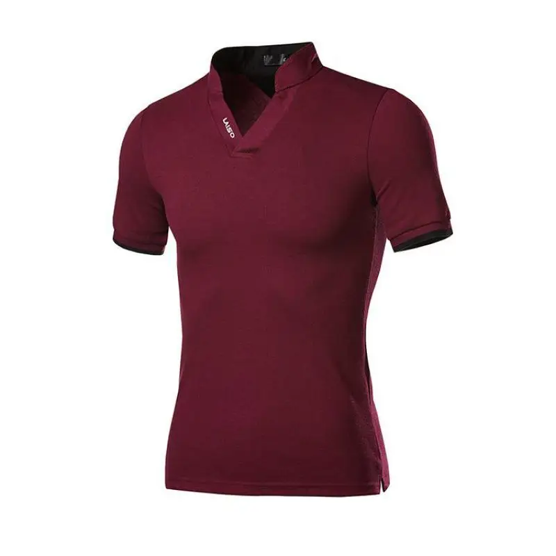 Мужская Тонкая рубашка-поло с коротким рукавом, с воротником-стойкой