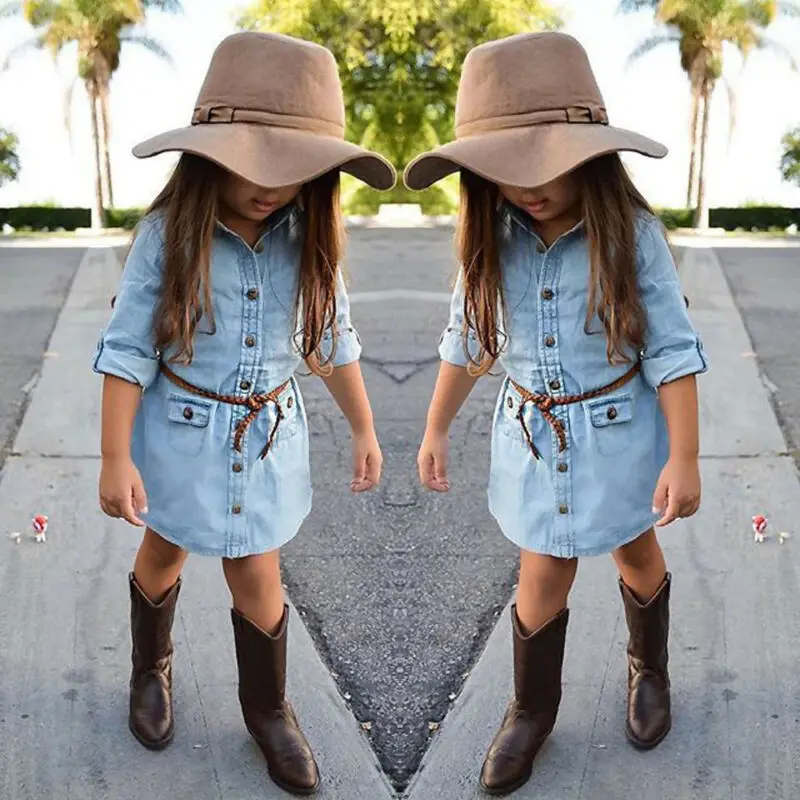Осеннее джинсовое платье для маленьких девочек, повседневное свобод...