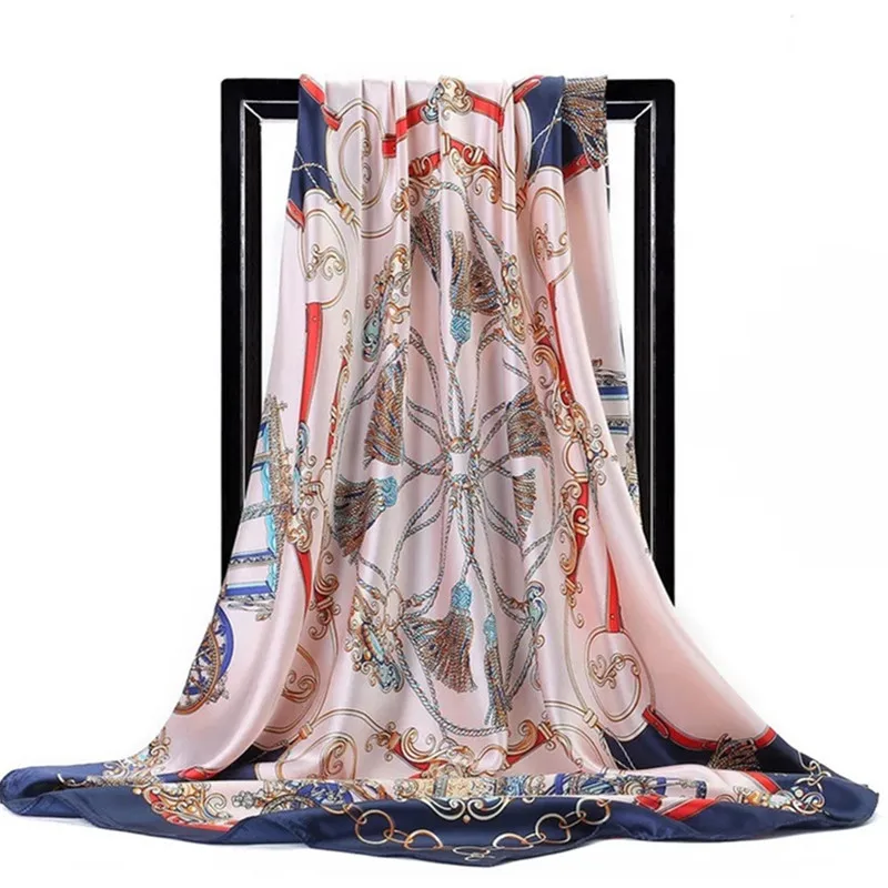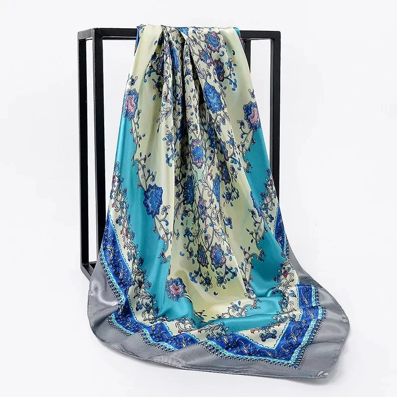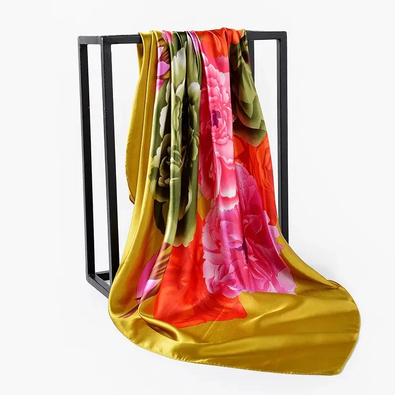 Шарф женский с цветочным принтом, модный Шелковый квадратный носовой платок, маленький офисный шейный платок, 90*90 см, 2019
