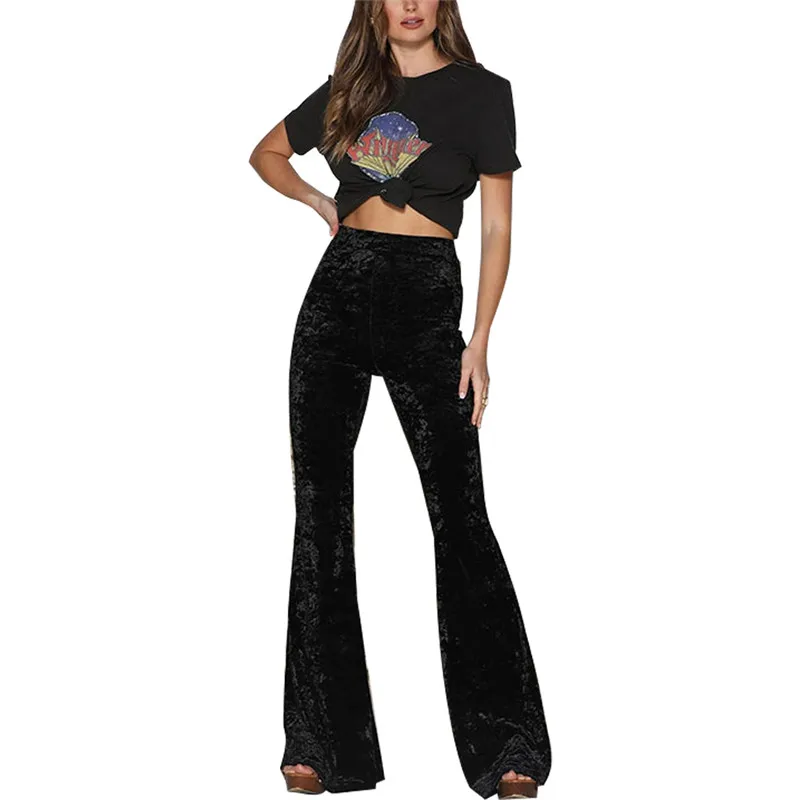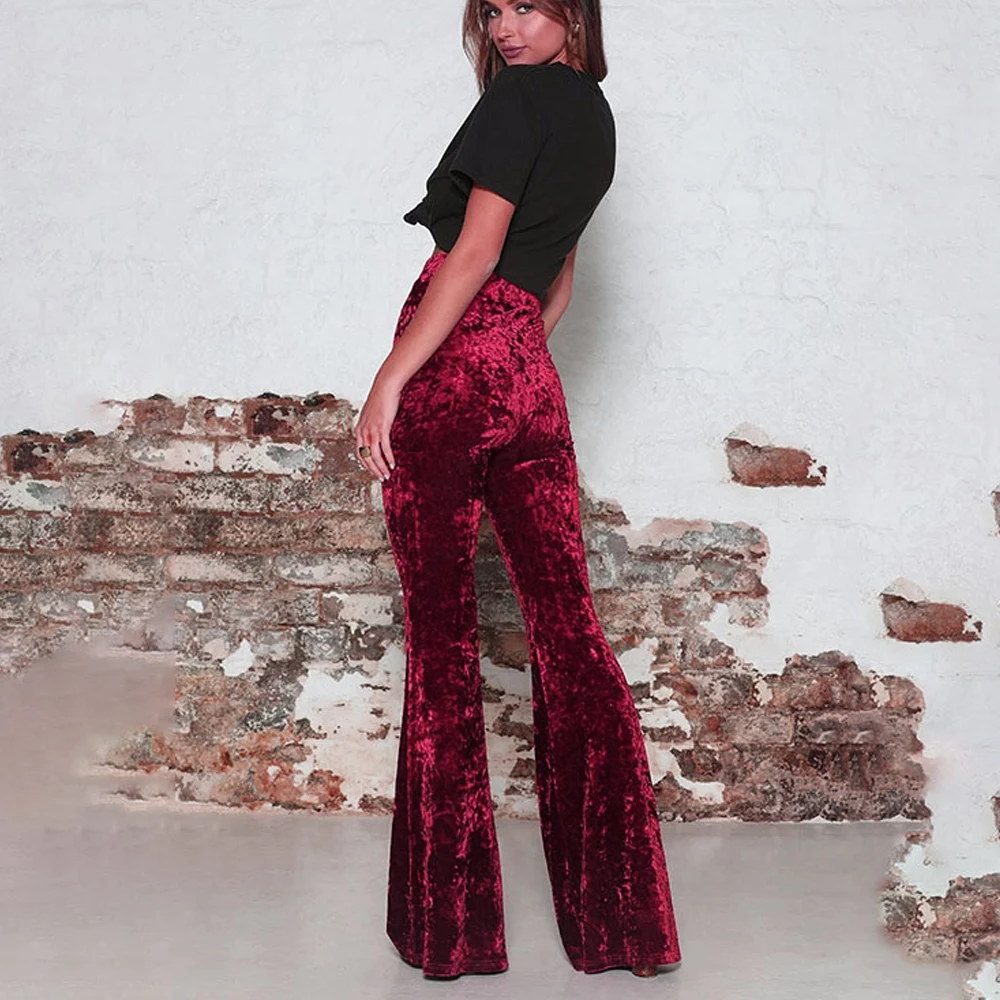 Женские облегающие пикантные брюки-клеш в готическом стиле, осенне-зимние Бархатные брюки с высокой талией, облегающие брюки стрейч для фитнеса, женские брюки