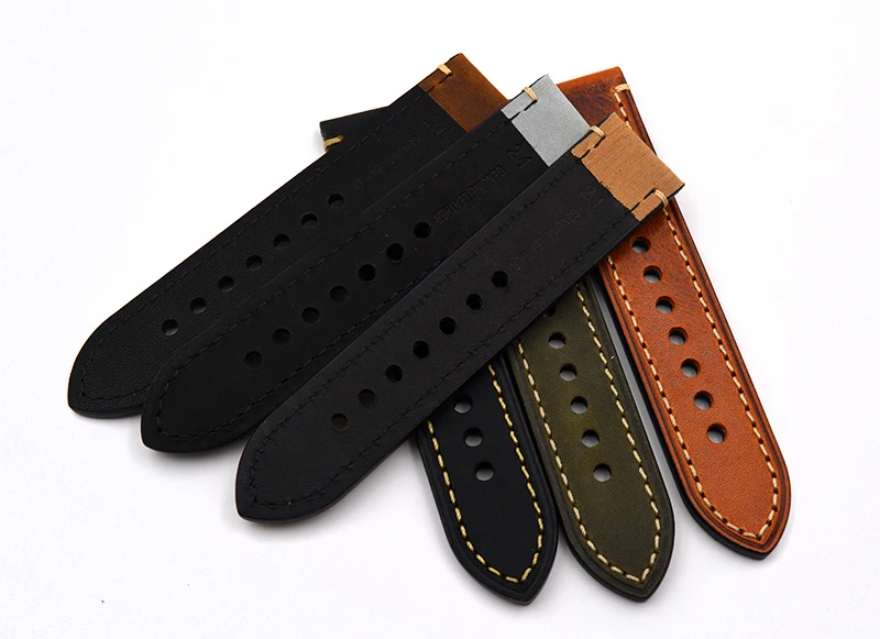 Ретро коричневый хаки синий 22 мм 24 мм Италия натуральная кожа рем...
