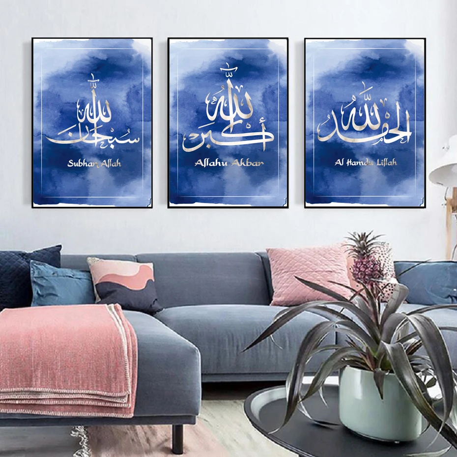 Скандинавская абстрактная синяя чернильная мусульманская настенная Картина на холсте настенная печать Аллах картины постеры для гостиной Рамадан Декор