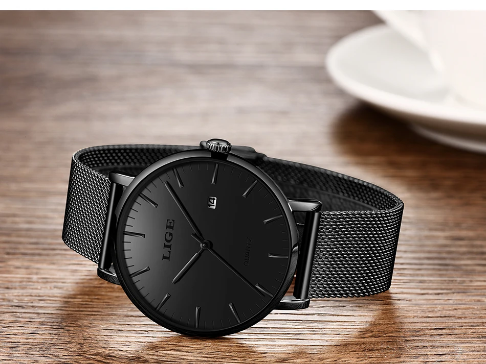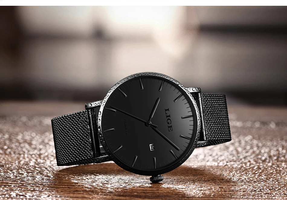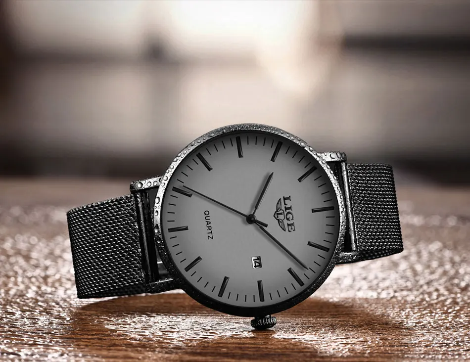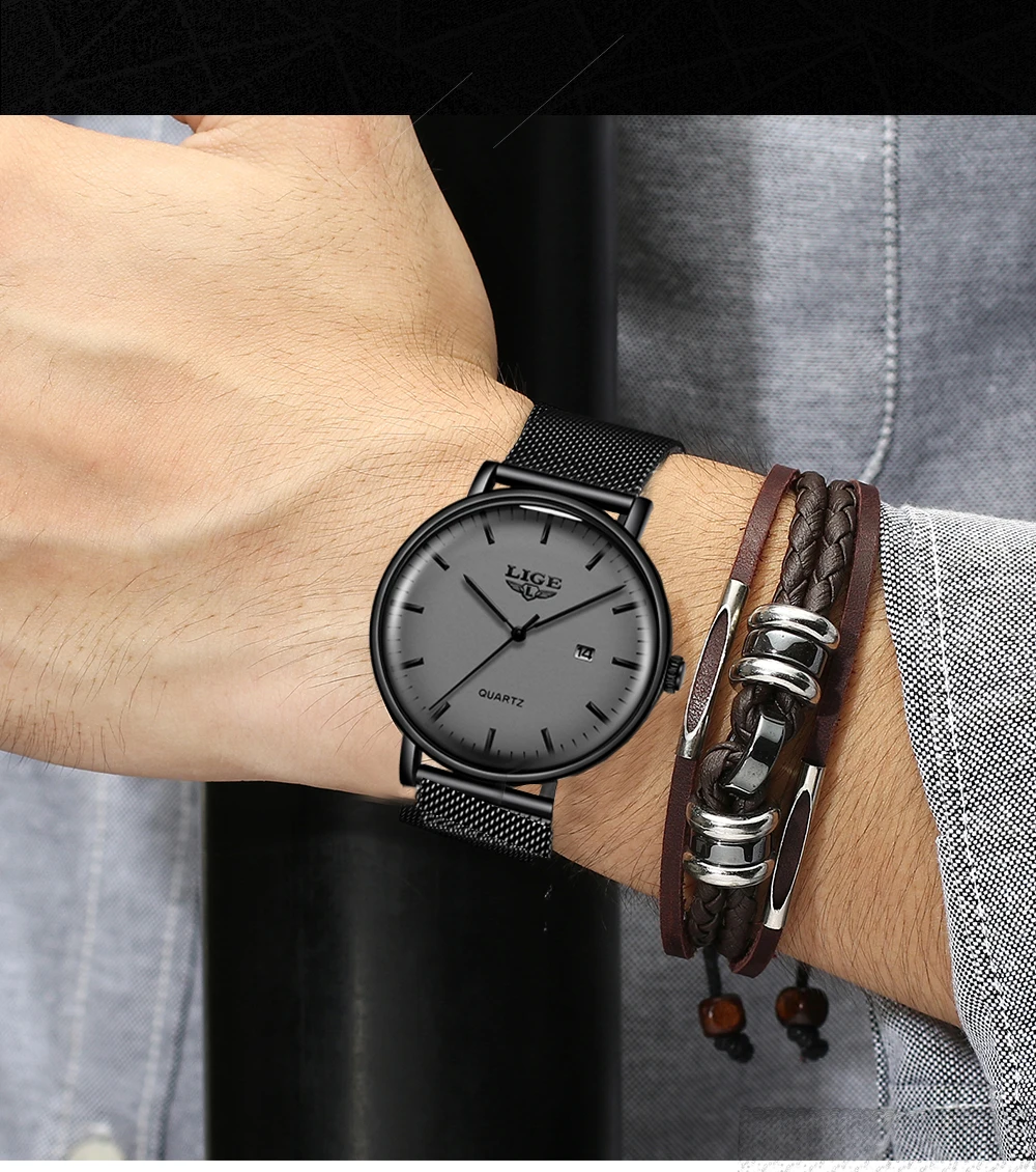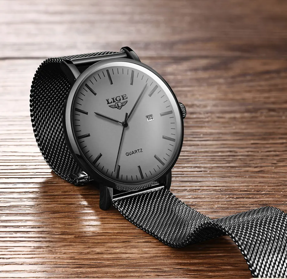 Часы наручные LIGE Мужские кварцевые, модные повседневные Роскошные ультратонкие водонепроницаемые с сетчатым браслетом из нержавеющей стали, 2021