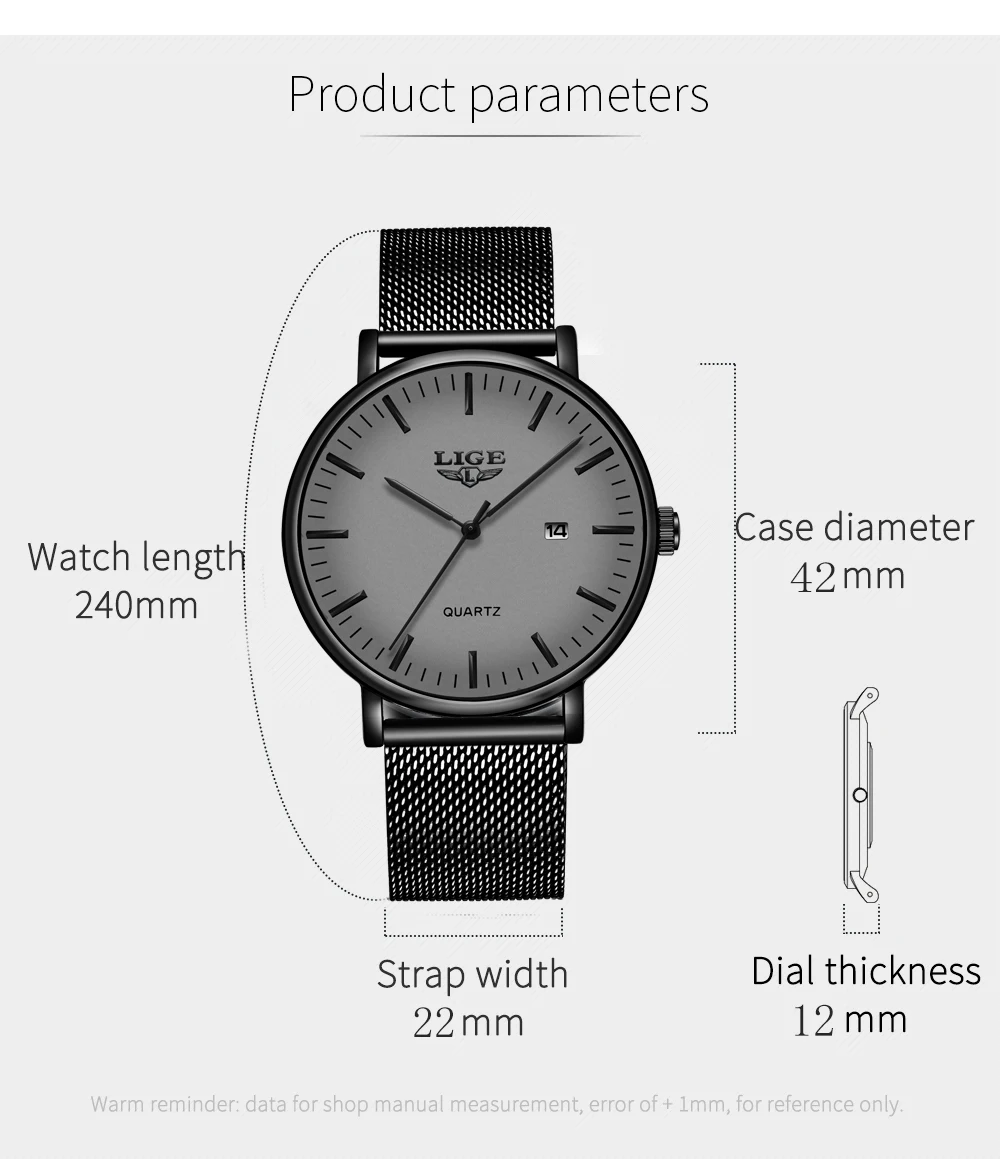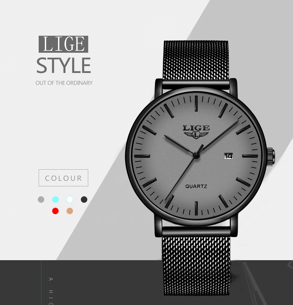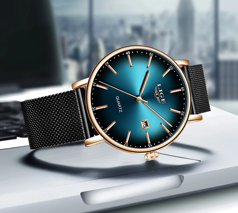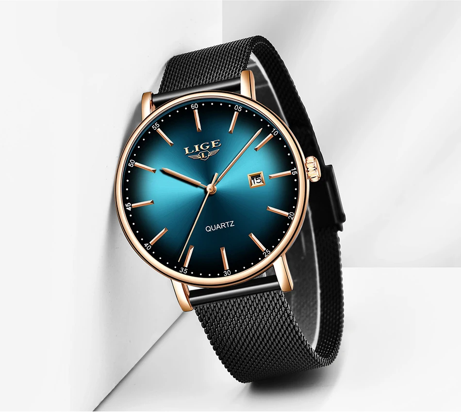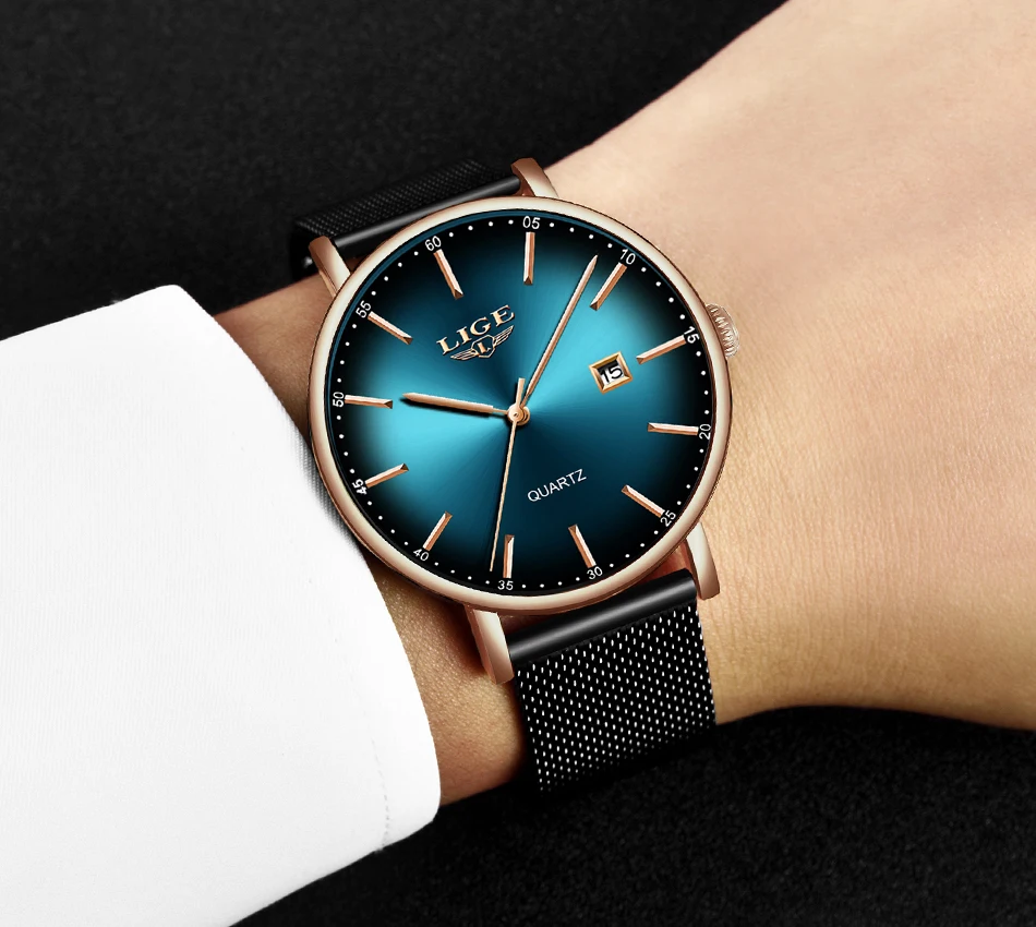 Часы наручные LIGE Мужские кварцевые, модные повседневные Роскошные ультратонкие водонепроницаемые с сетчатым браслетом из нержавеющей стали, 2021