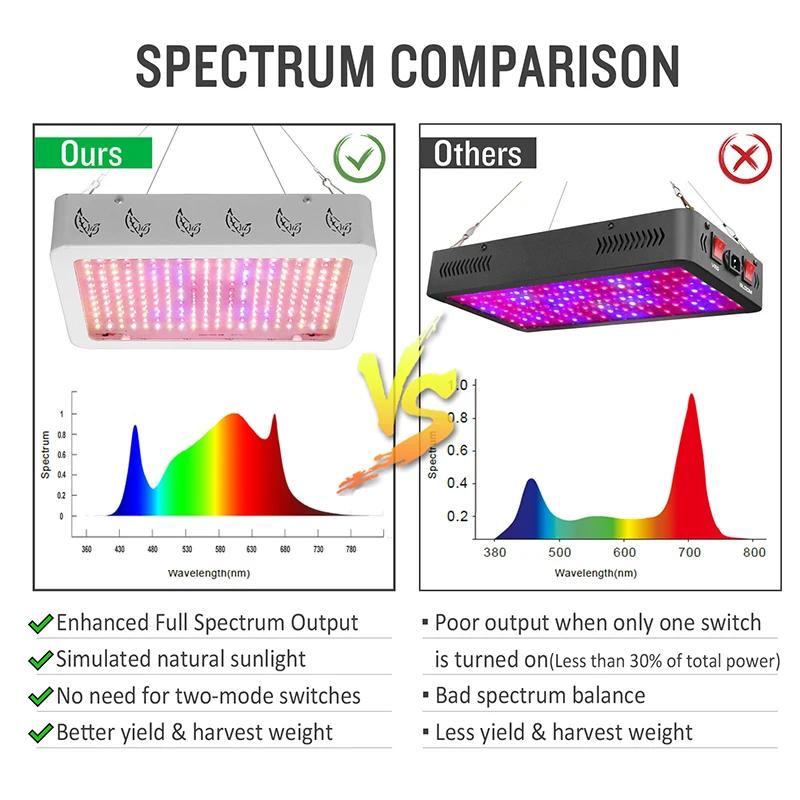 Полный спектр-включает в себя все спектры, которые необходимы вашим растениям. Имитация естественных огней на всех этапах роста.