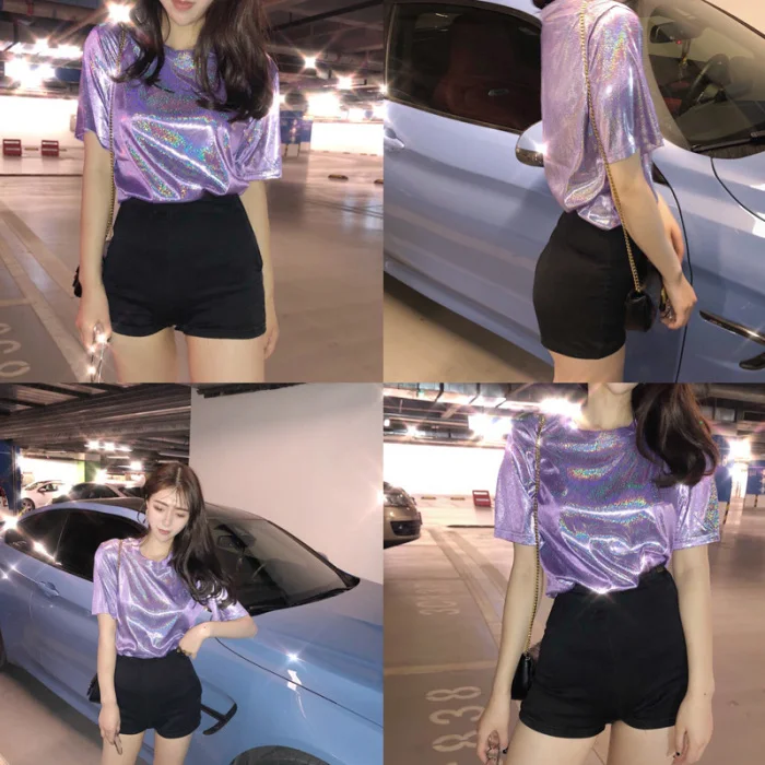 Женская Повседневная футболка, цветная Светоотражающая футболка с коротким рукавом, модель EIG88