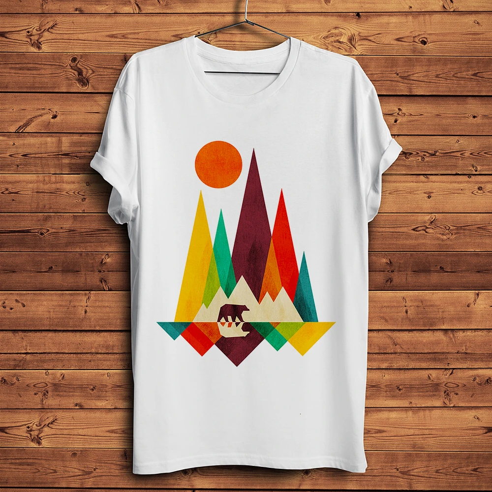 Футболка мужская с короткими рукавами, Современная Художественная цветная тенниска в стиле унисекс, с принтом медведя горы и природы, крутая Повседневная Уличная одежда, белая