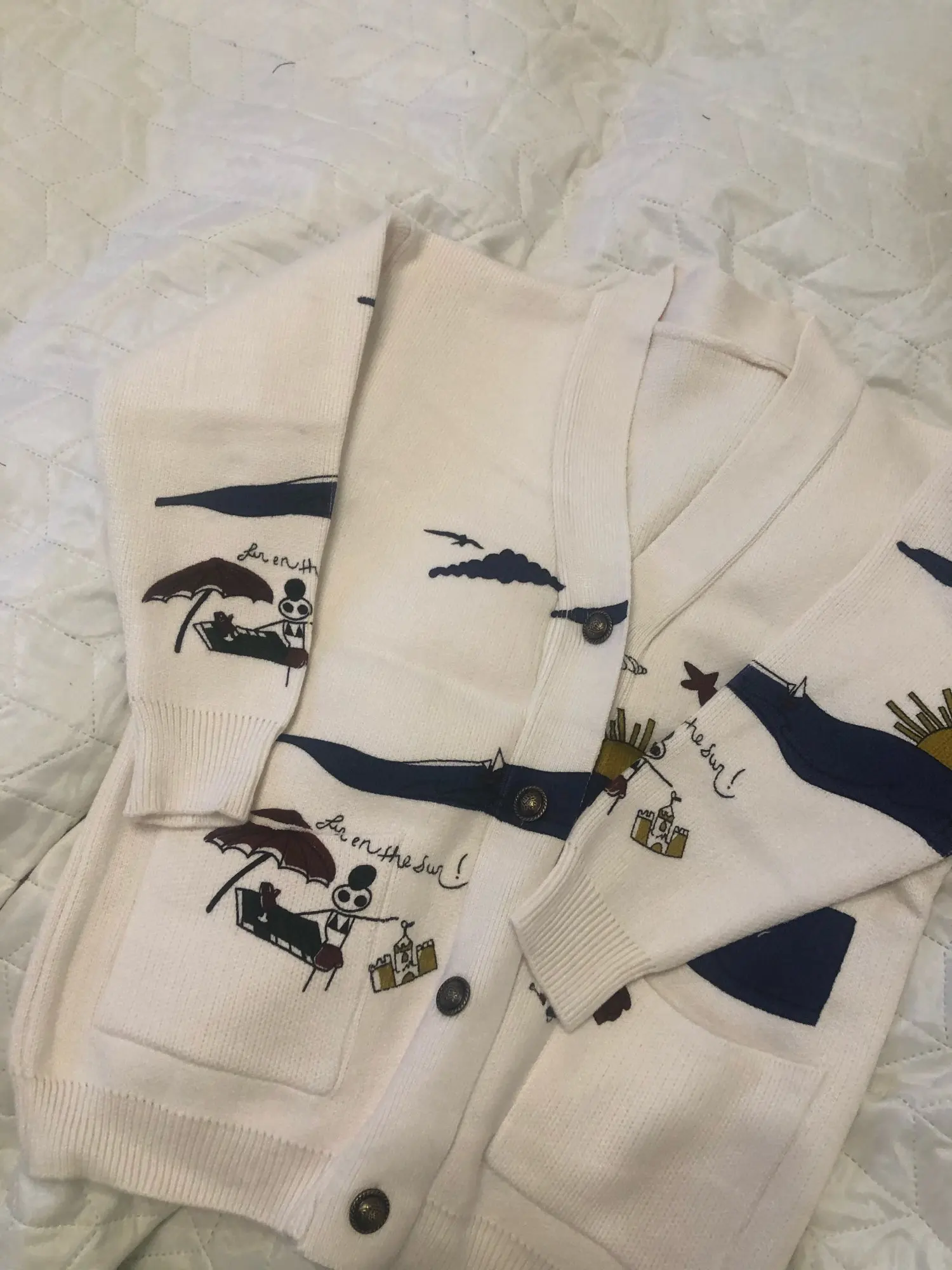 Божественный кардиган! Невероятно приятный материал. Цвет не ярко белый, что классно. Принт замечательный. Везде четко прорисован. Вырез не глубокий, можно носить на белье лишь