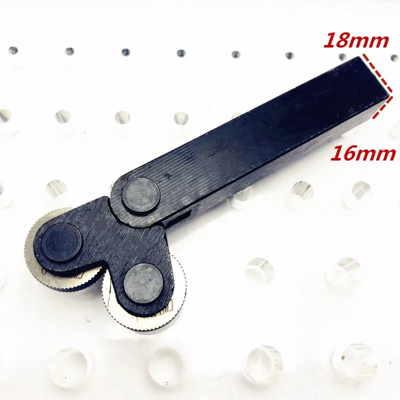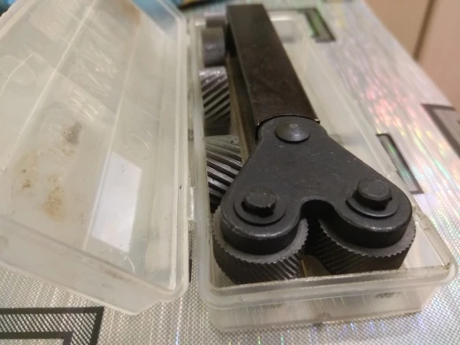 Качество изготовлениятак себе. Ролики люфтят на осях, прорезь в державке больше толщины ролика почти на 1,5мм. Стопорные кольца неудобные для смены роликов. Державка как будто вручную вырезана. В работе еще не пробовал, но напильником доработать все таки придется.