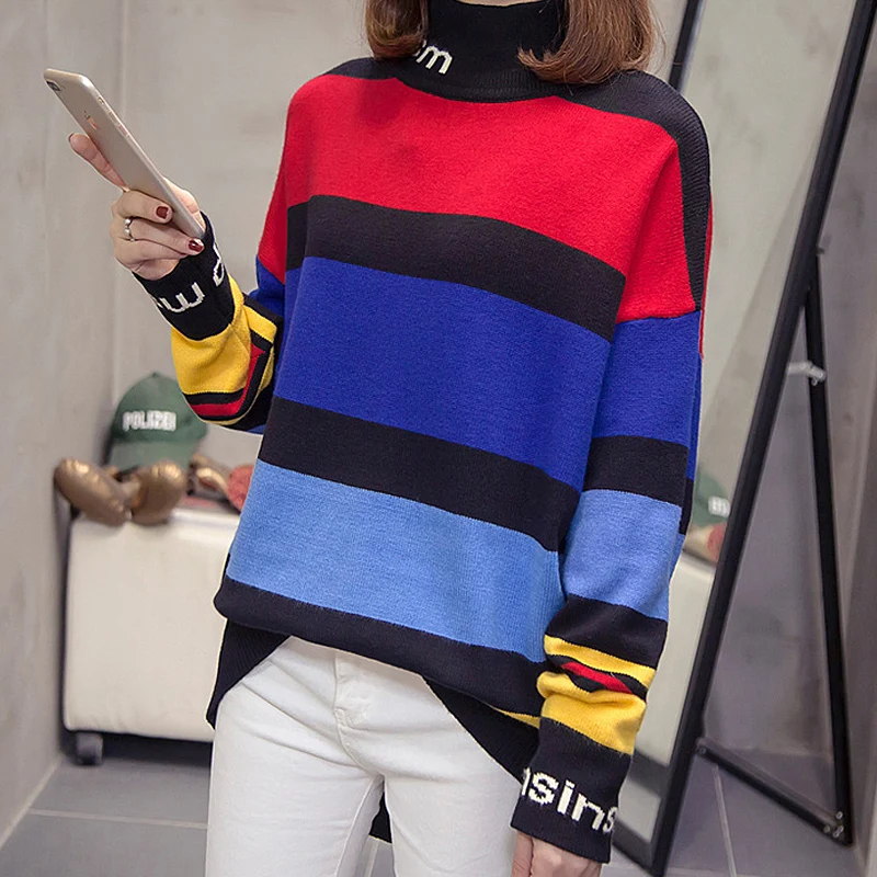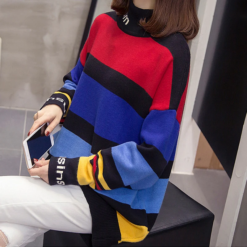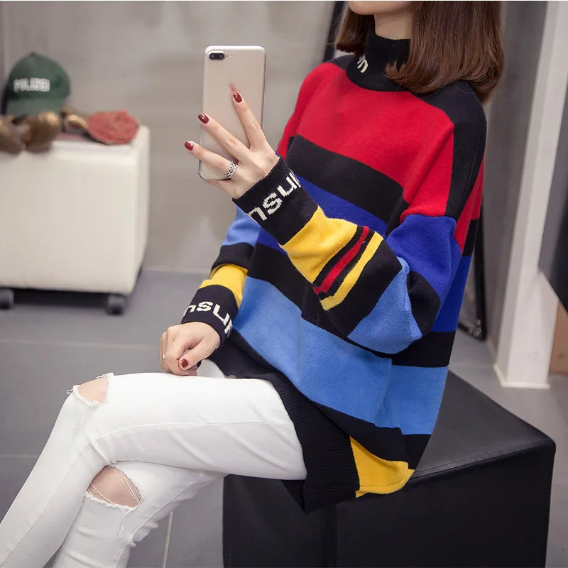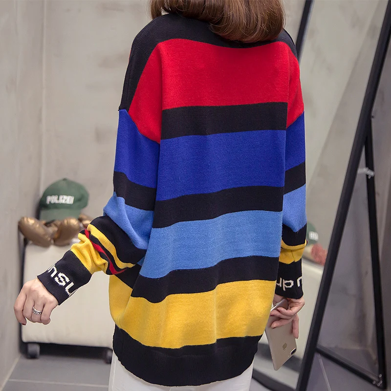Новый модный женский свитер 2021 года на осень-зиму, повседневные уличные вязаные пуловеры, свободные полосатые топы с длинным рукавом в корейском стиле