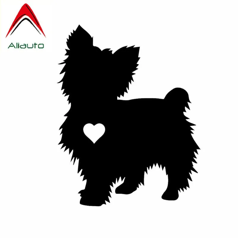 Мультяшная Автомобильная наклейка Aliauto йоркширского терьера, силуэт сердца, автомобильное украшение, милая виниловая наклейка с принтом собаки покрытие, царапины, 12 см * 10 см
