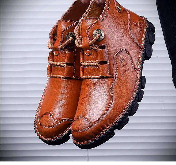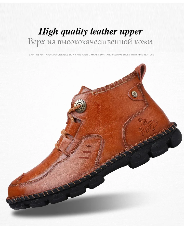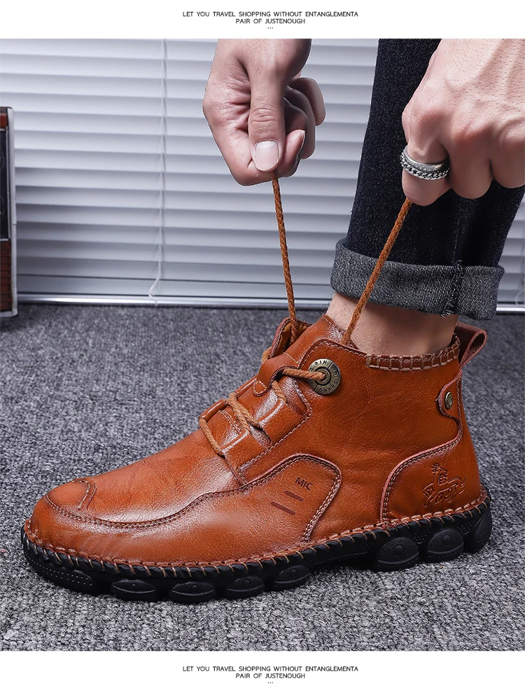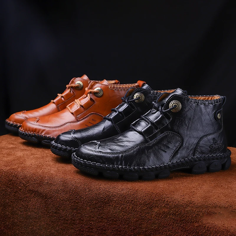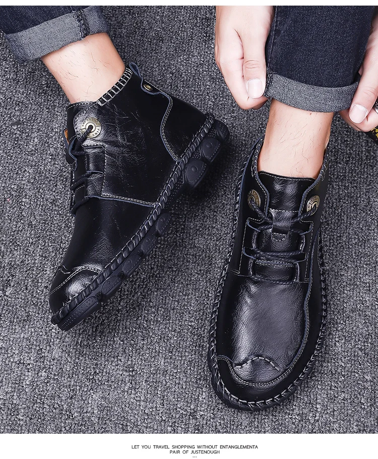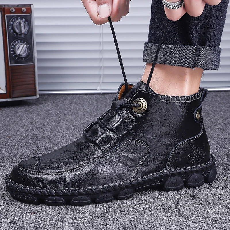 Мужские кожаные ботинки Осень-Зима водонепроницаемые Нескользящие итальянские мужские мокасины удобные мотоциклетные ботинки мужская обувь размера плюс 38-48