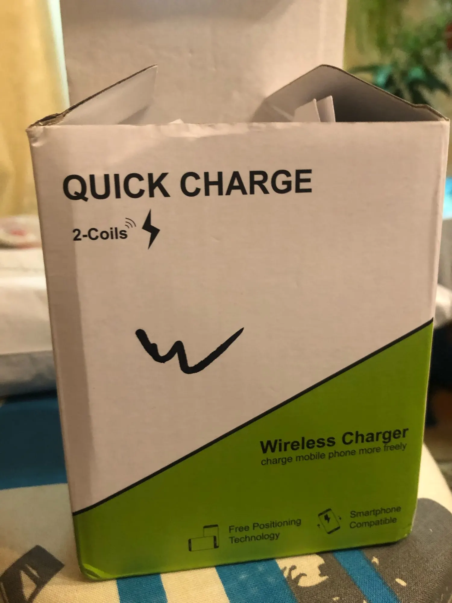 Зарядка пришла примерно за месяц. Такая, как я хотела- беспроводная и не лежит телефон, а стоит - можно на нем работать. Заряжает медленно; но тут такие характеристики- видела, когда покупала. Все равно довольна, надеюсь прослужит долго