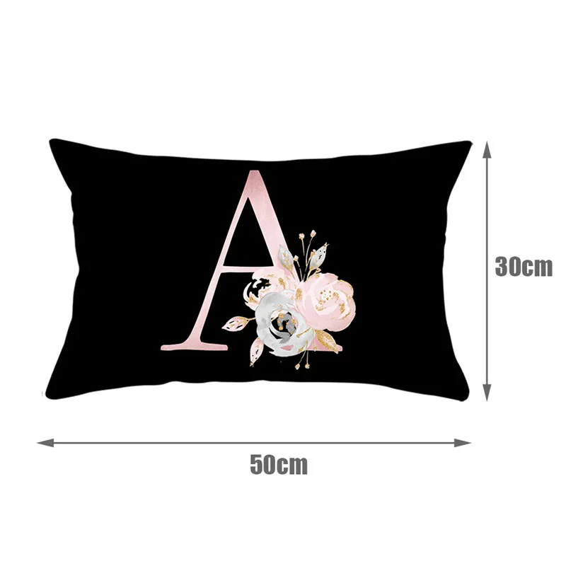 Черная прямоугольная наволочка с 26 буквами, 30x50 см, стильный диз...
