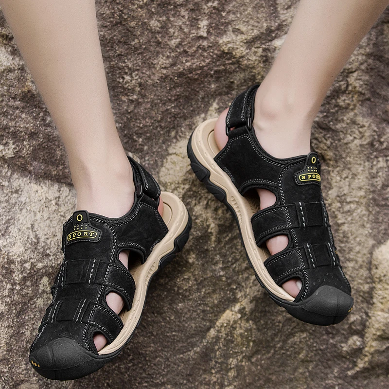Кожаные мужские сандалии; Классические зимние сапоги из натуральной кожи сандалии удобные, повседневные летние шлепанцы с плоской подошвой, уличные пляжные мужские сандалии кроссовки
