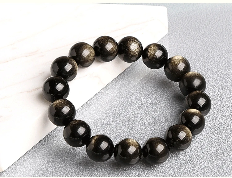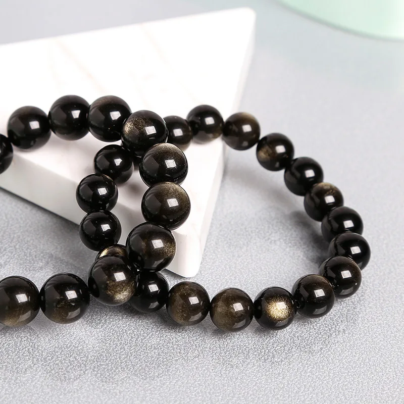 Браслеты JD из черного золота и обсидиана, эластичные круглые классические браслеты с натуральным камнем 6-18 мм для мужчин и женщин, ювелирные изделия на удачу