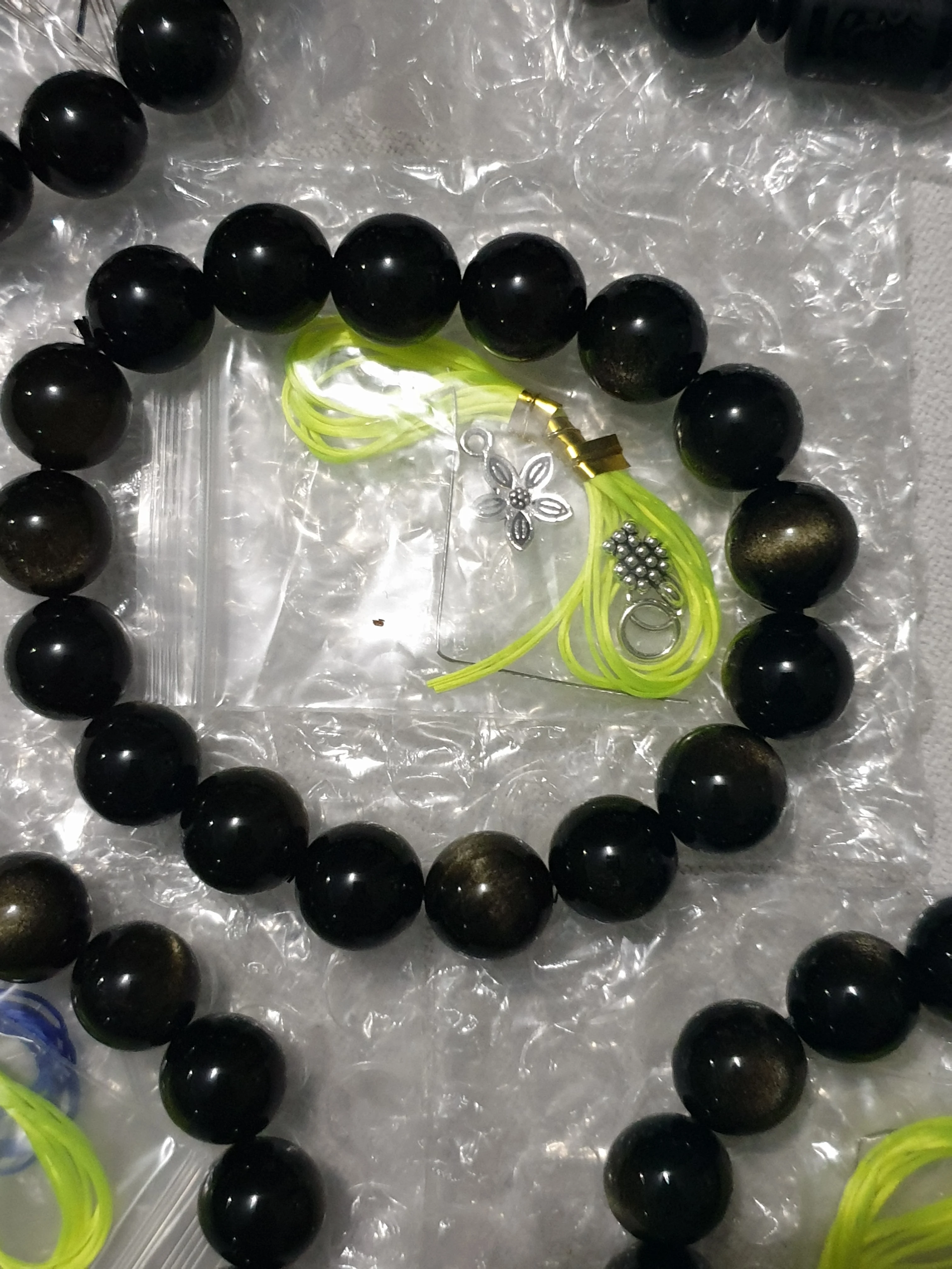 Это моя вторая покупка, красивые Золотые блики во всех бусинах, которые можно увидеть даже при нормальном освещении, поставляются с дополнительной эластичной лентой и инструментом для регулировки размера и переделки. Красивая комбинация с черным агатом и браслетом с бусинами в виде тигрового глаза с драконом. Еще раз спасибо команде JD.