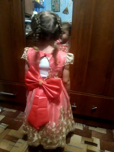 Привет, красивое платье. Выглядит богато. Это не tandetna. Лук для agrafkę, это единственный минус, я не przypinalom córce на спине.