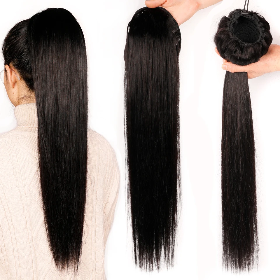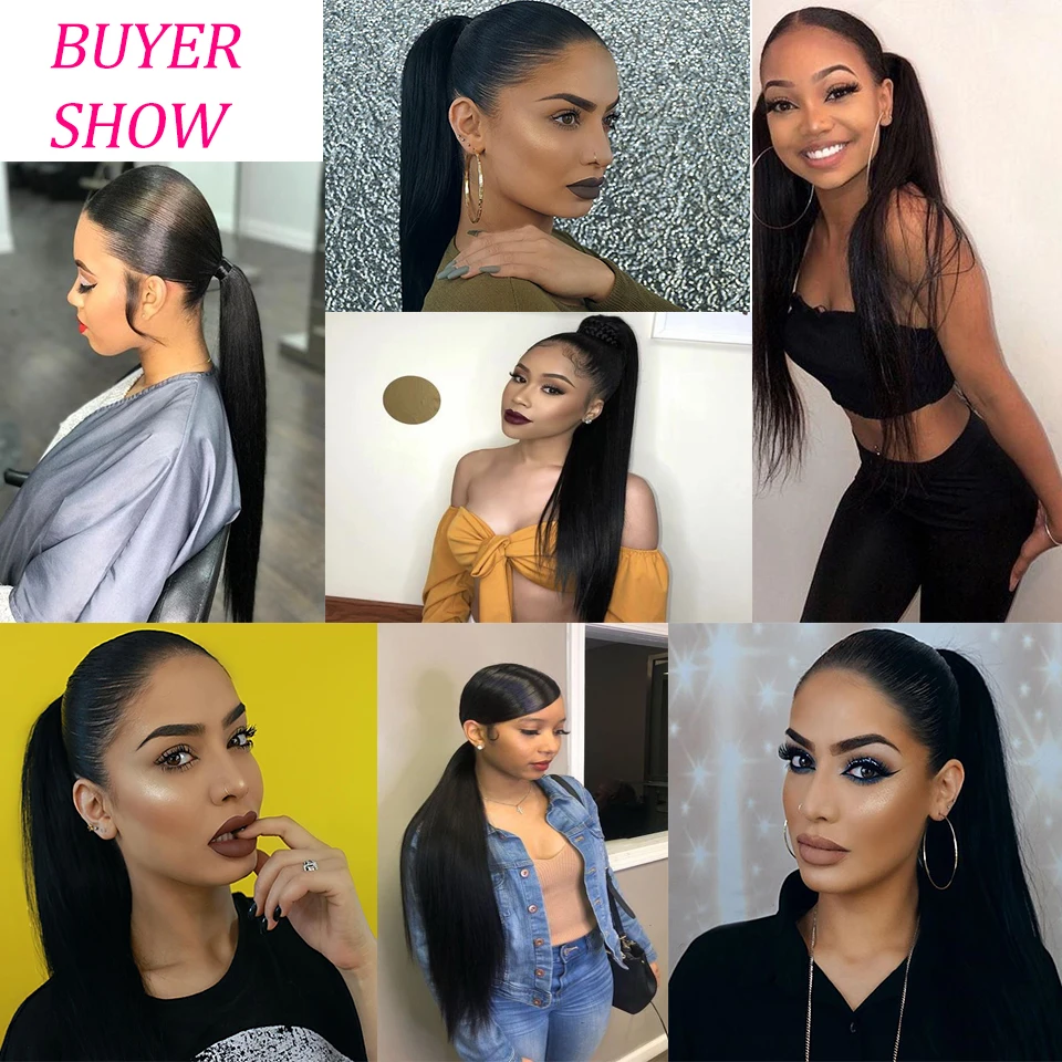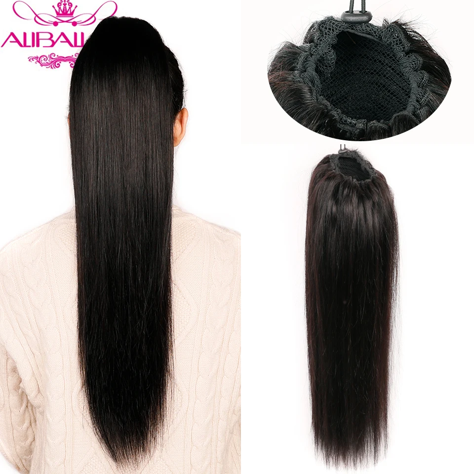 Aliballad, прямые человеческие волосы на шнурке, бразильский хвост, волосы Remy на заколках для наращивания конского хвоста для женщин, 150 г