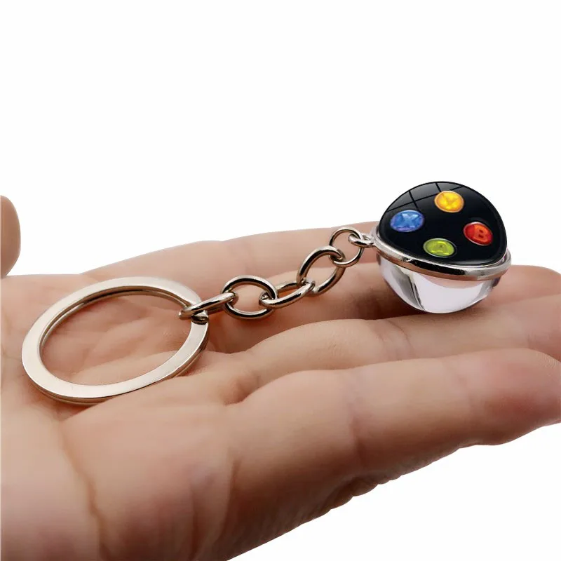 Игровой контроллер с узором, двухсторонний стеклянный шар, брелок, подвеска, Модная бижутерия, брелок-держатель Geeky, идеальный подарок для парня