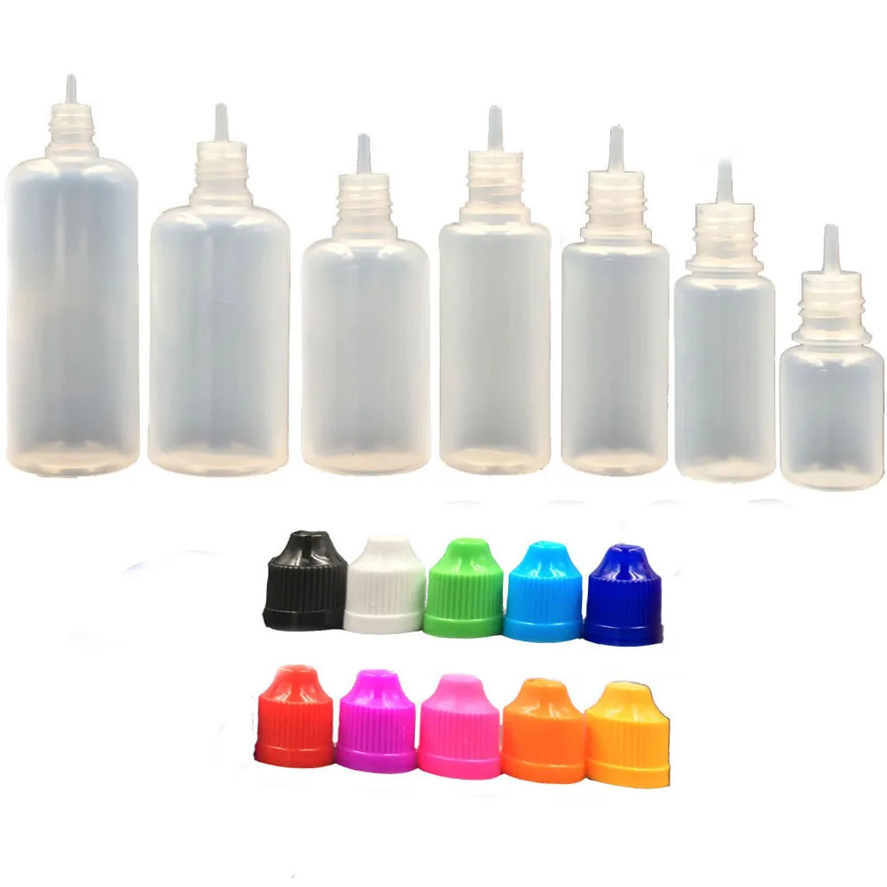 20 шт., пластиковые флаконы для сока 100 мл, пустые флаконы-капельницы для жижи (жидкость для электронных сигарет) с длинными тонкими наконечниками, смешанные цвета, мягкие сдавливаемые