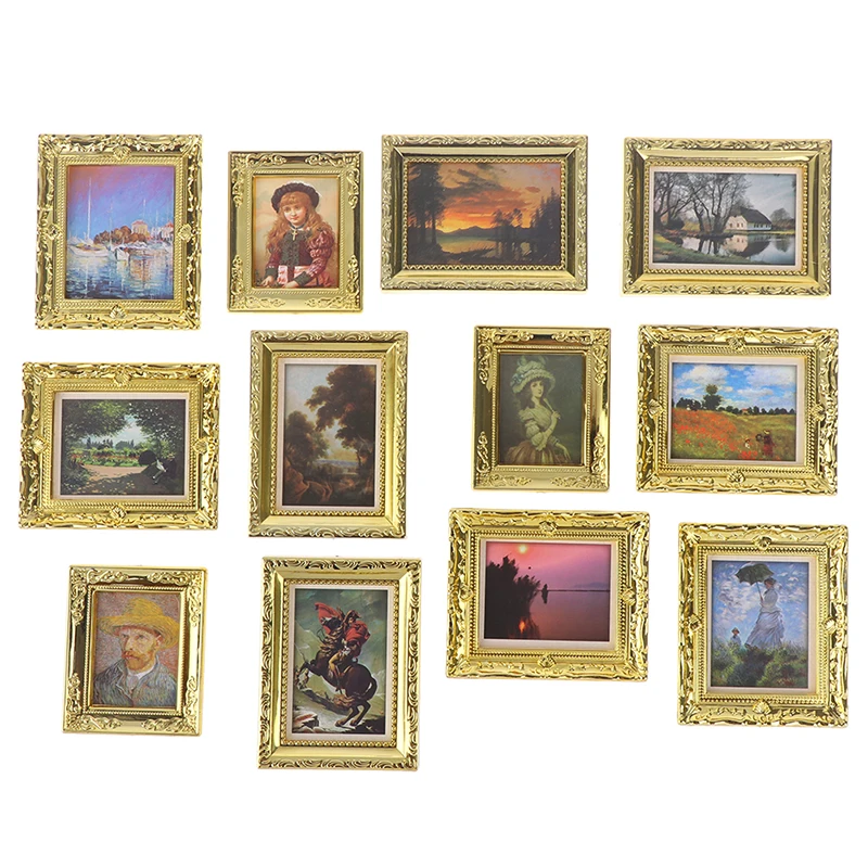 Миниатюрный Кукольный домик 1:12, мини декоративные аксессуары, античная рамка, картина маслом, сделай сам, деревянный кукольный домик, декоративные аксессуары