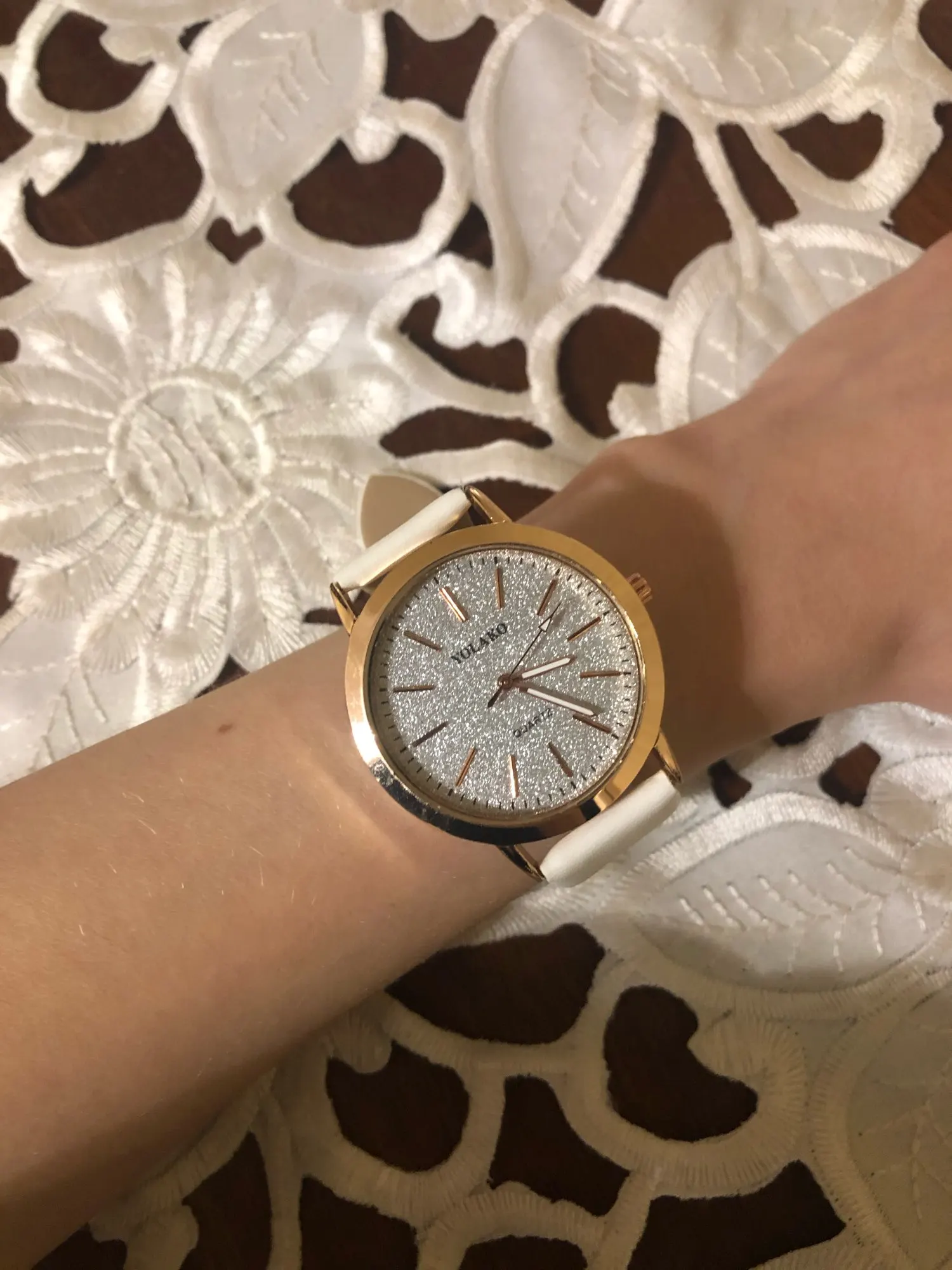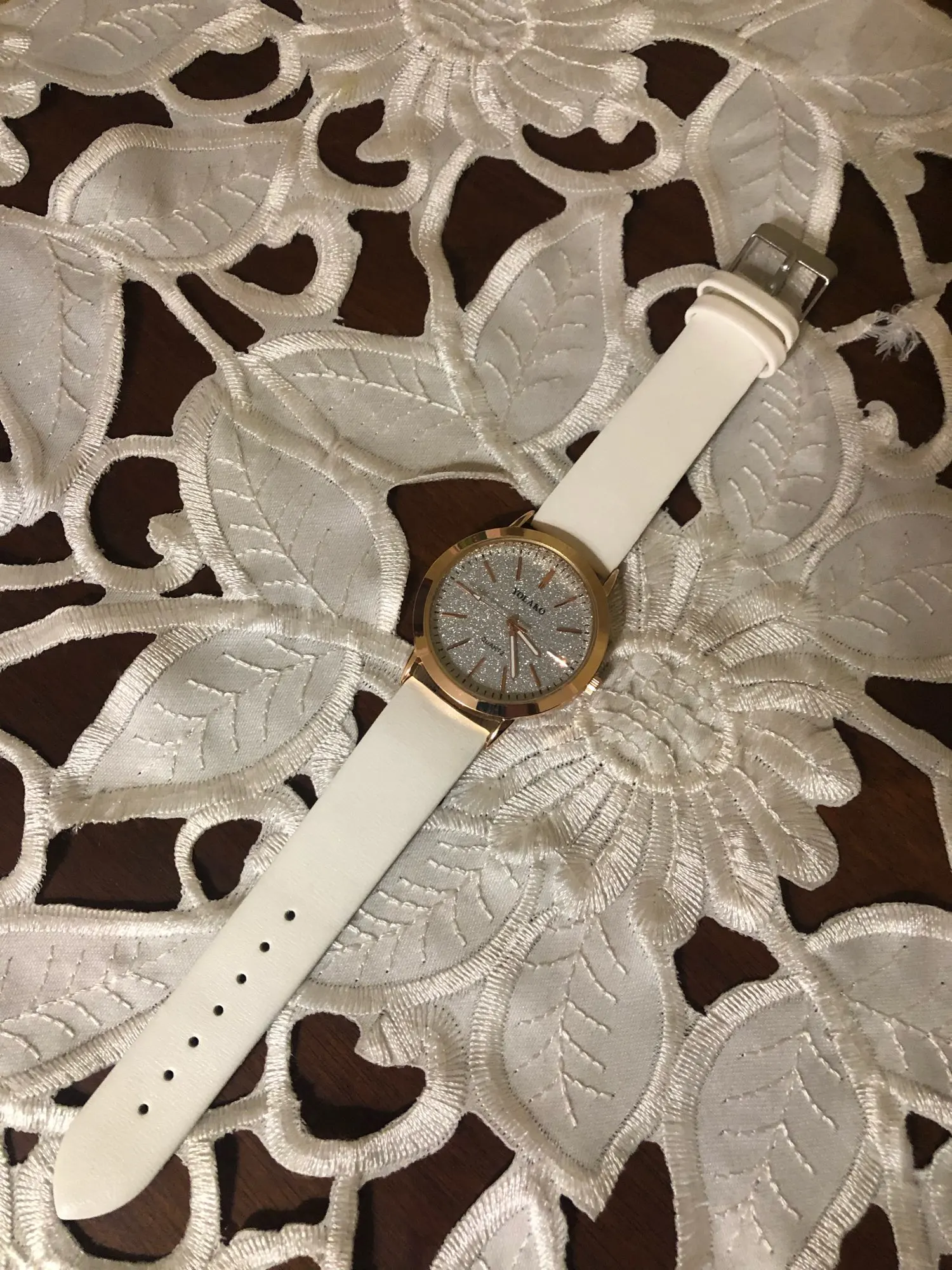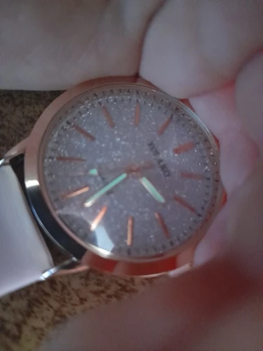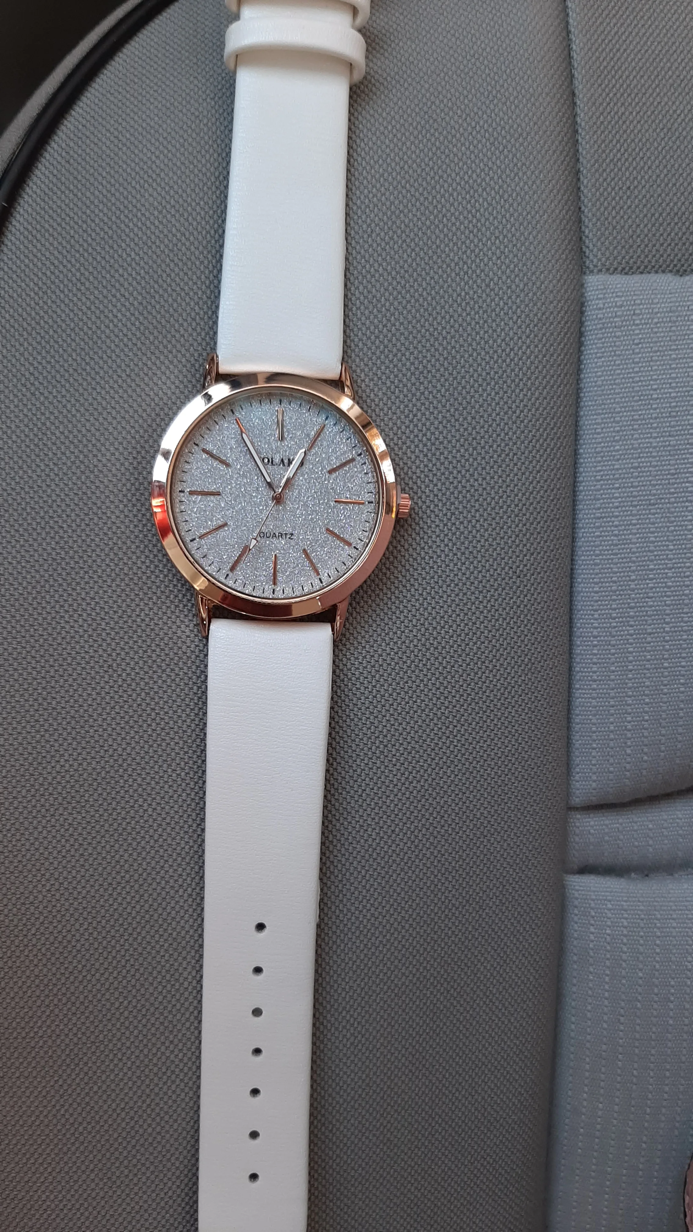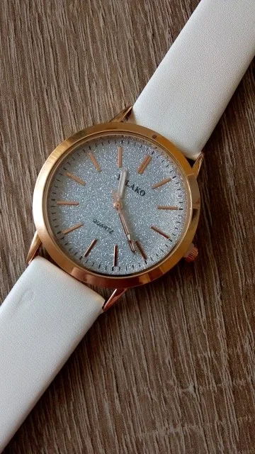 Часы красивые- играющий песок в циферблате делает их дорогими.С рабочей батарейкой, ремешок не важный но я так и ожидала...суть в часах а ремешок поменяется) Специально выбирала белый цвет чтоб если что и белый и чёрный ремешок подойдёт! Доставка супер быстрая- неделю в Украину.Это первая моя практика по такой скорости. Почтой Meest Продавца рекомендуют, огромное спасибо)))