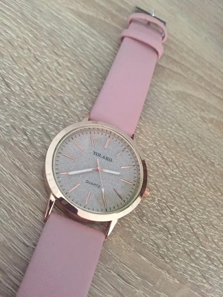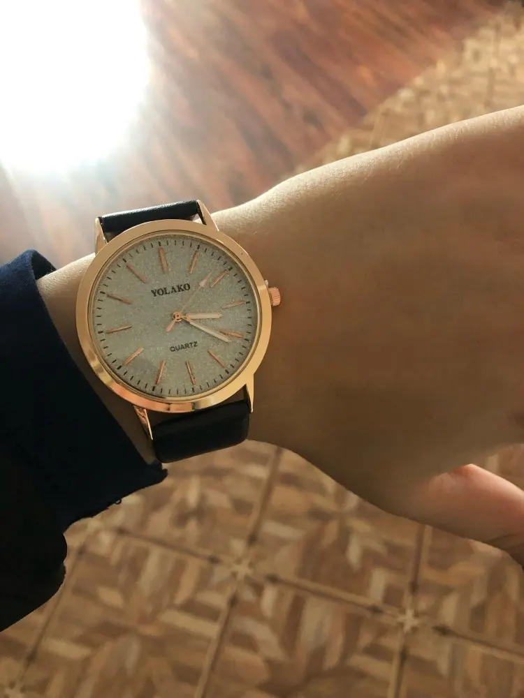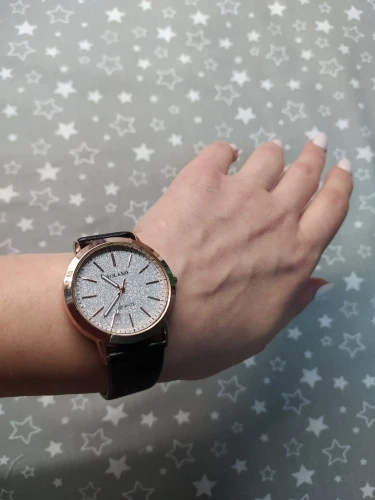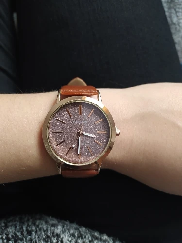 Продавец молодец, упаковал хорошо, часы аккуратные, цвет цыферблата немного другой, ближе к коричневому, а не серому. Возможно это даже лучше, ближе к цвету ремешка. Единственный совет продавцу, пряжку к часам не мешало бы тоже вешать в золоте, как часы. Заказ продавец отправил сразу, получила только сейчас, по вине почты месяц пролежали у них, забыли направить уведомление и отметить в отслеживании. Продавцу спасибо.